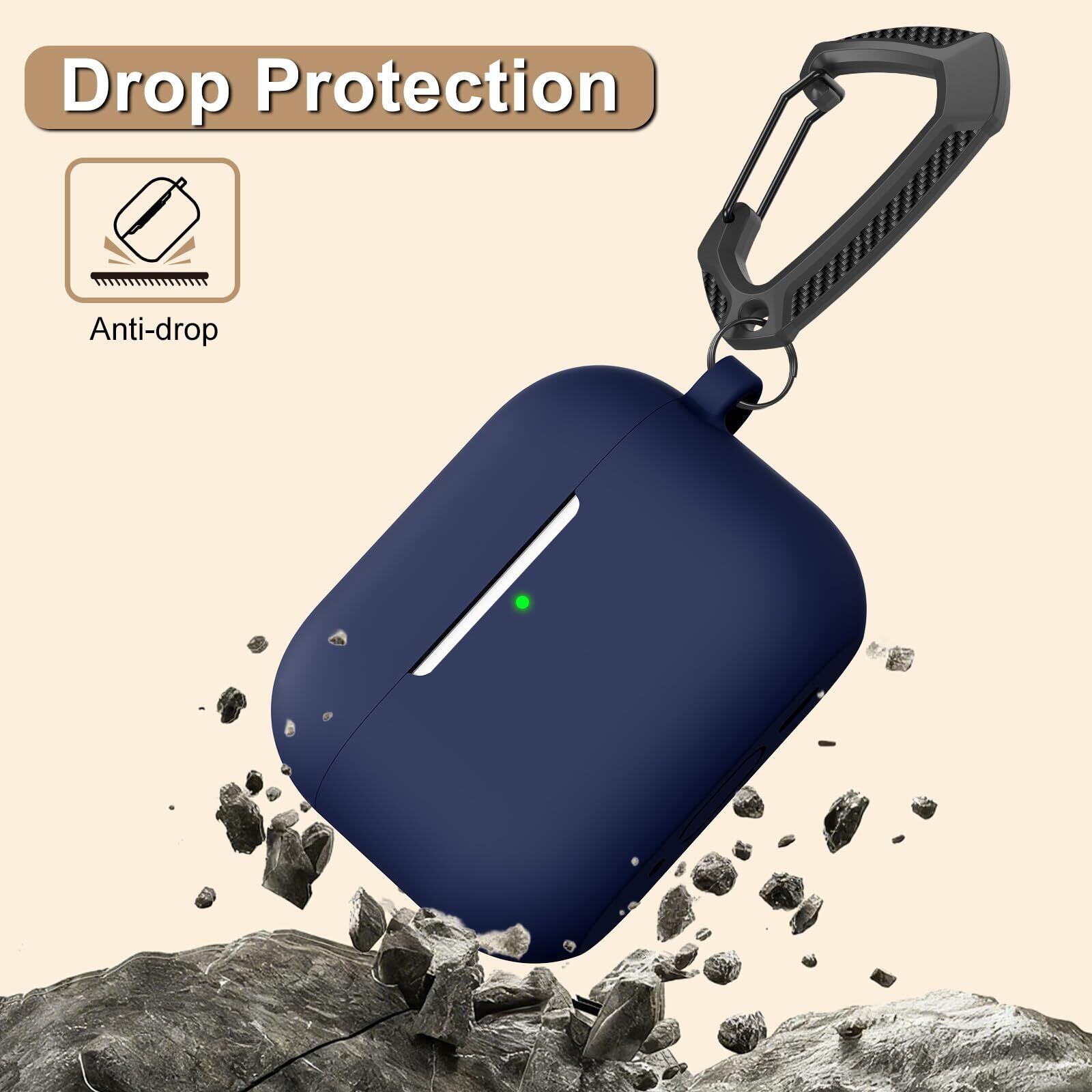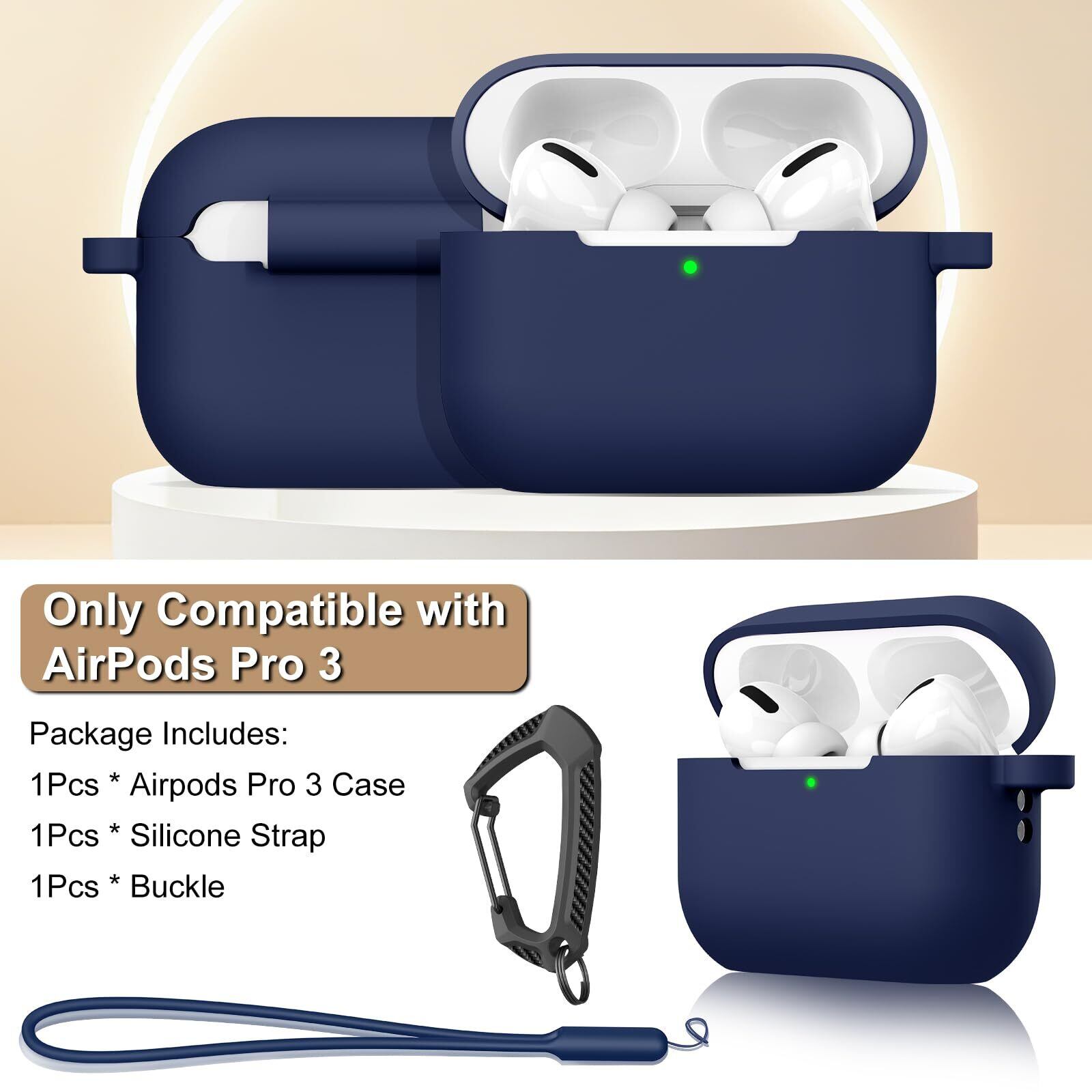 MILPROX AirPods Pro 3 ケース(2025)エアーポッズ プロ 第3世代 専用ケース シリコン ソフト 全面保護 耐衝撃 防震 防塵 落下/紛失防止 ワイヤレス充電対応 カラビナ&シリコン製ストラップ付き(ミッドナイトブルー)