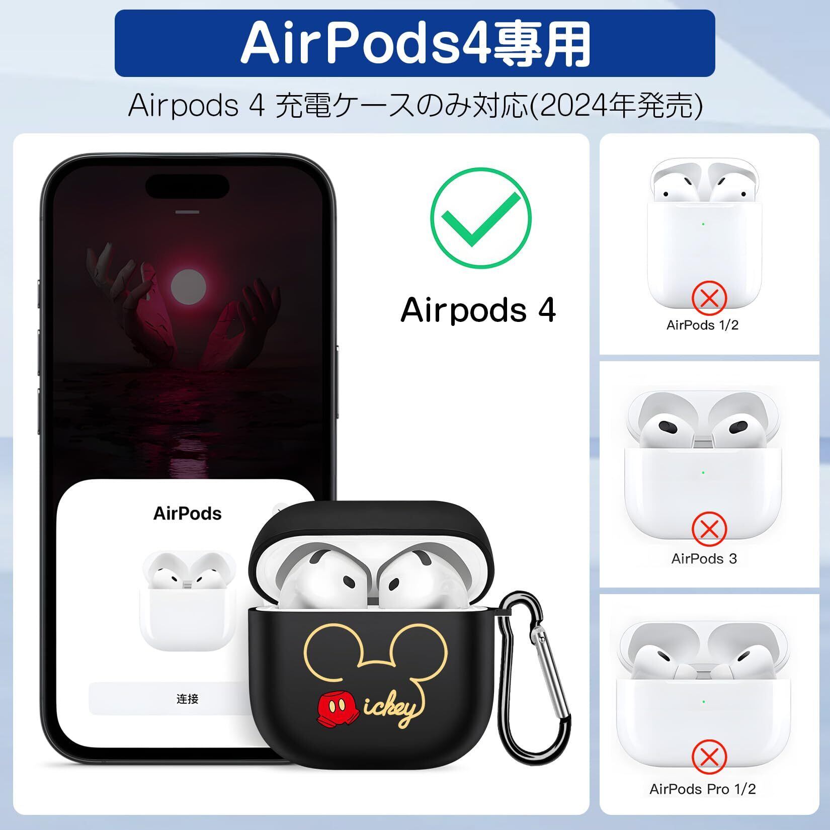 for AirPods 4 ケース【2024年発売】 AirPods 第四世代 対応 ケース おしゃれ かわいい キャラクター 人気 オシャレ 御洒落 カップル エアーポッズ4 カバー TPU つや消し 落下防止 キズ防止 耐衝撃 全面保護 エアポッツ カバー カラビナ付き 紛失防止
