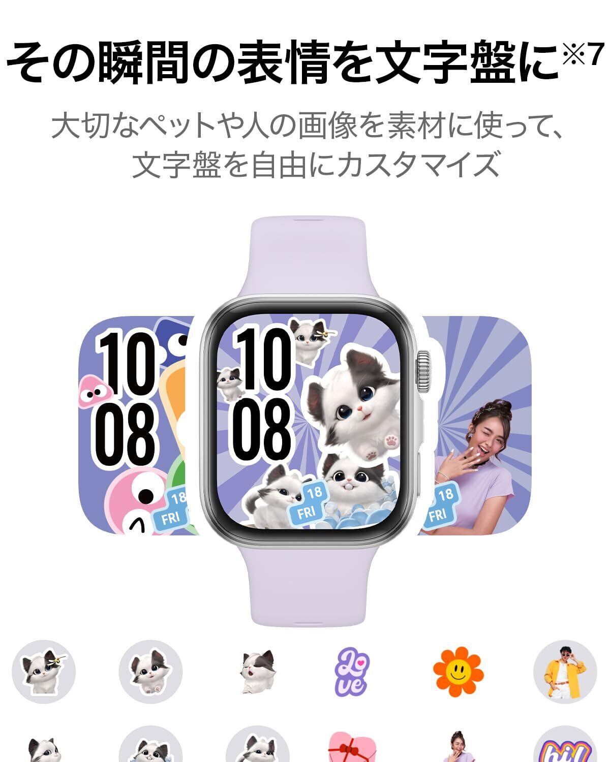 このスマートウォッチは、フィットネスのために特化した機能を数多く搭載。心拍数、睡眠、ストレス管理など、様々なデータをリアルタイムで測定し、健康維持をサポートします。情緒測定機能を使用すれば、心の健康も見逃しません。