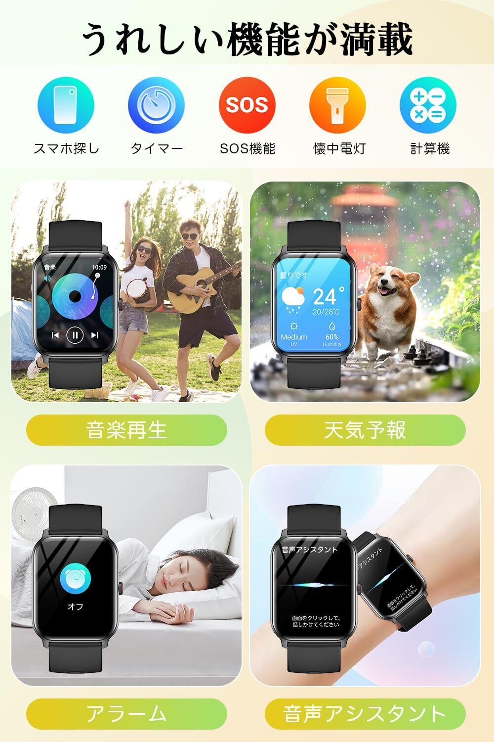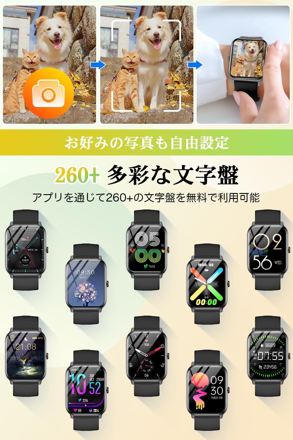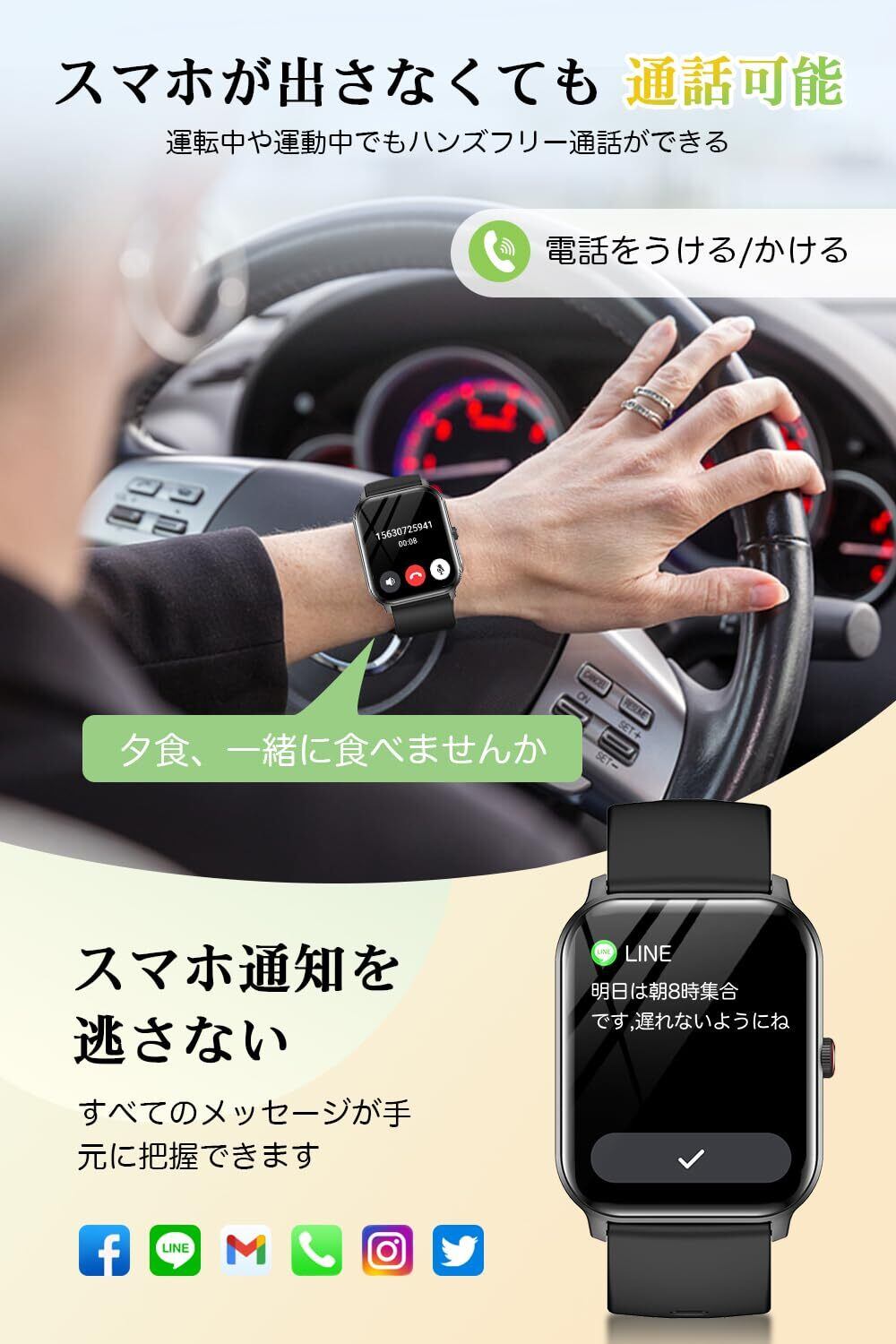 \【新商品】スマートウォッチ【2025改良最新型】Bluetooth通話機能 iPhone対応 アンドロイド対応 音楽再生 電卓機能 活動量計 SMS/Line通知 多機能スマートウォッチ 100種類運動モード 防水 メッセージ通知 腕時計 天気予報 スポーツウォッチ レディース メンズ 多種類文字盤 (ブラック)/