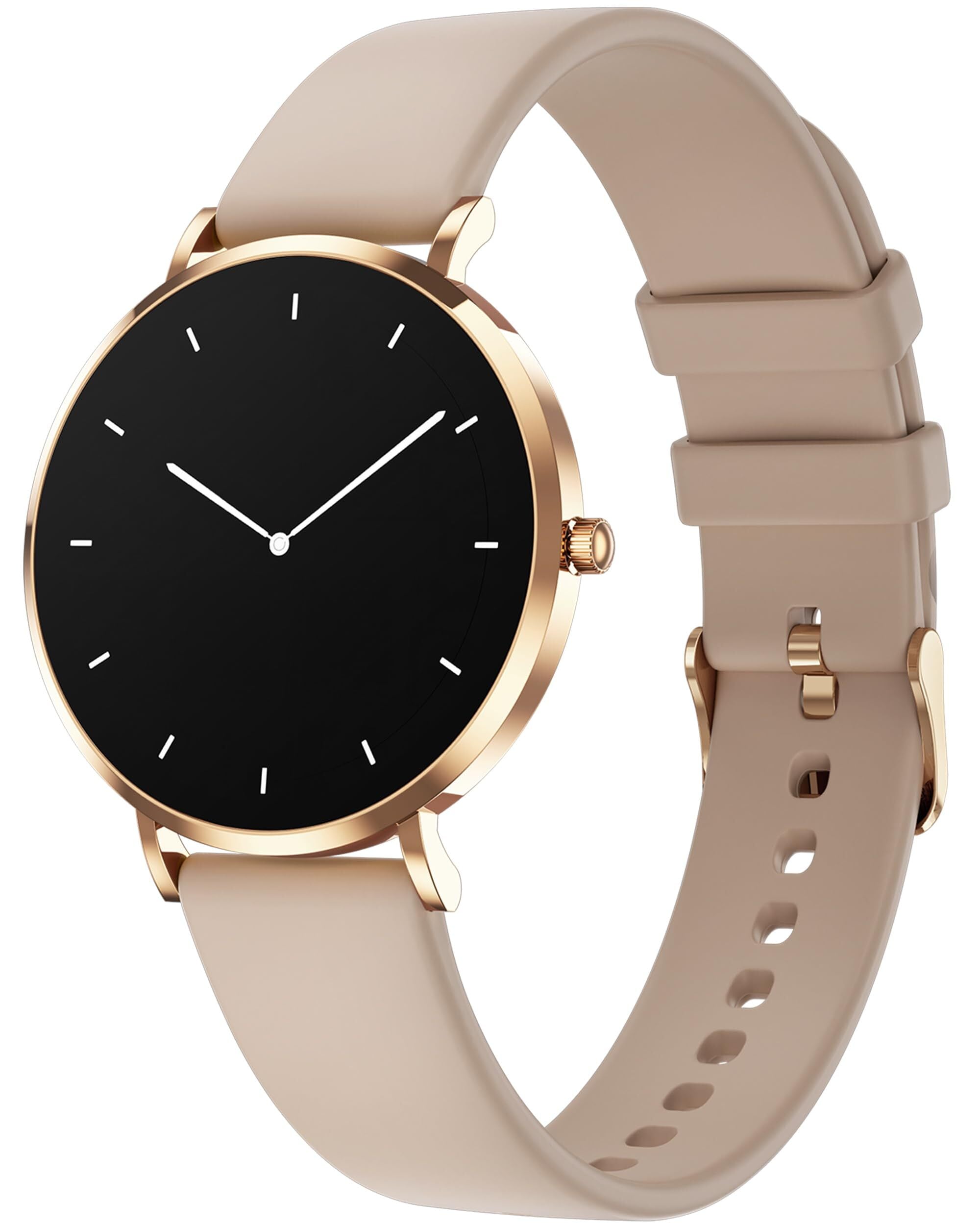 【新着商品】MONOMAM Rotondo スマートウォッチ レディース iPhone対応 アンドロイド対応 メンズ 丸型 ベルト幅18mm 常時表示 AMOLEDディスプレイ 活動量計 Line 着信通知 (Rose Beige)