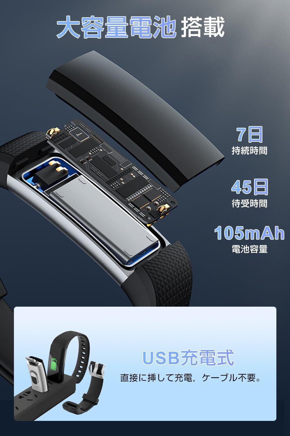 【充電方法】バントを外して、USB-Aポートを適用のUSB電源に差し込み、5分充電またはタッチパネルを3秒押して、スマートブレスレットをアクテイブします。USB充電ポートがあれば、スマートブレスレットを充電できますので、専用充電器を用意する必要がありません。ご注意:パソコンのUSBポートを使って、スマートブレスレットに充電する際は、充電時間が長くなる場合があります。(ご注意:ACアダプターは本製品に付属していません。)