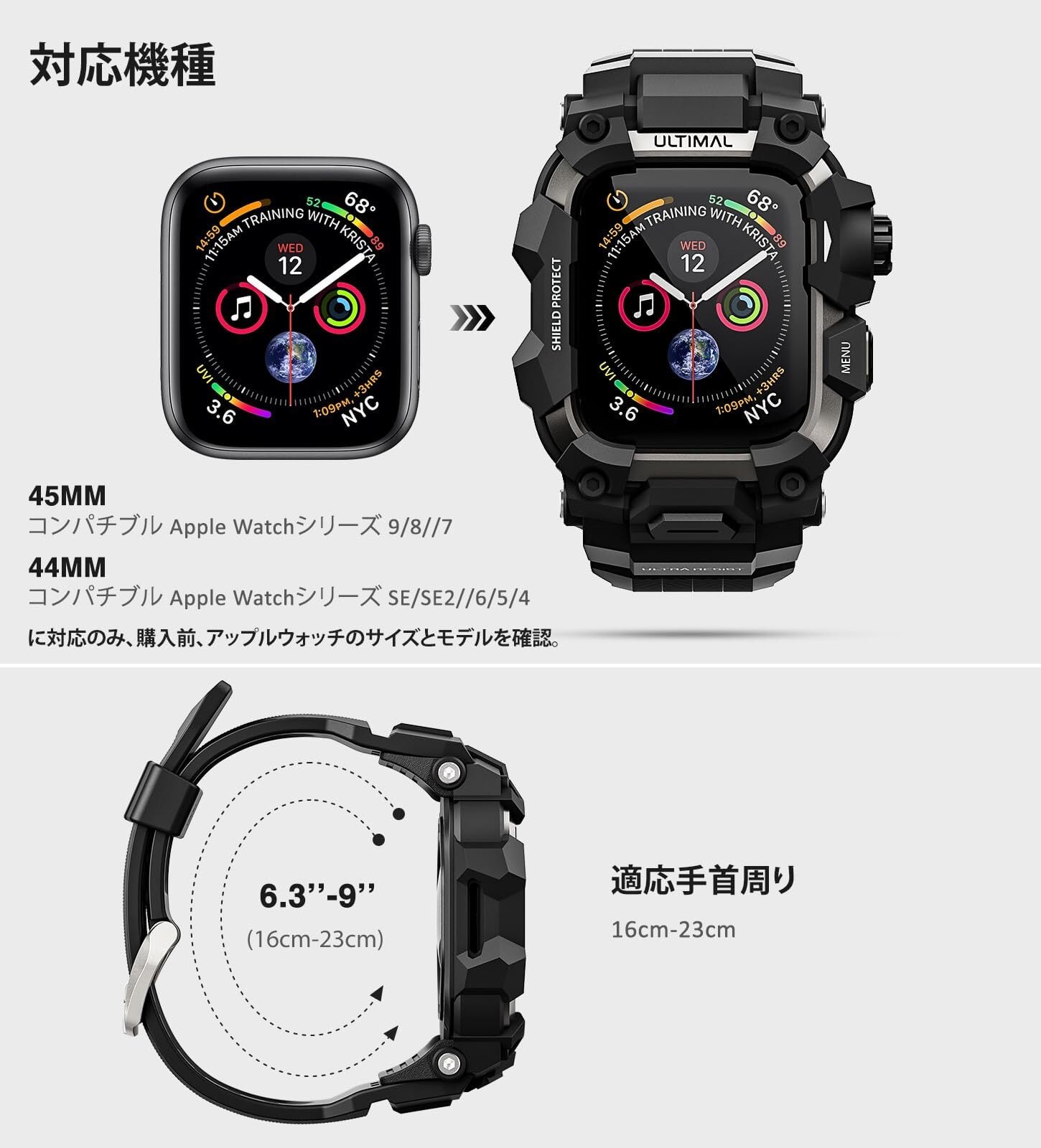 「堅牢でスタイリッシュなコンパチブル Apple Watch バンドが、あなたのデバイスを守ります!」