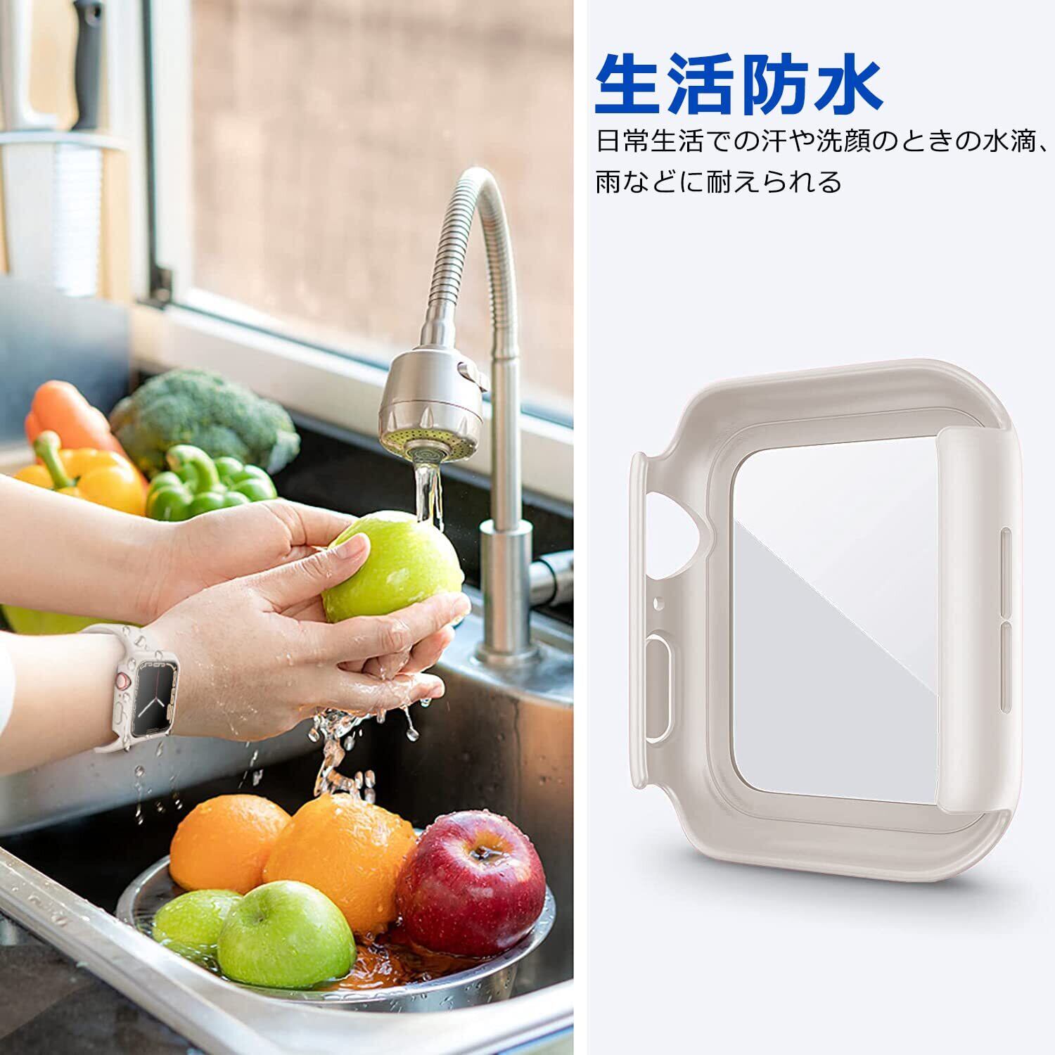 DIKESHGU for Apple Watch防水ケース Series6/SE3/SE2/SE/5/4 44mm/40mm アップルウォッチ保護カバー ガラスフィルム 一体型 PC素材 タッチ感良好 全面保護 装着簡単 耐衝撃 高透過率 指紋防止 傷防止(スターライト,40mm)