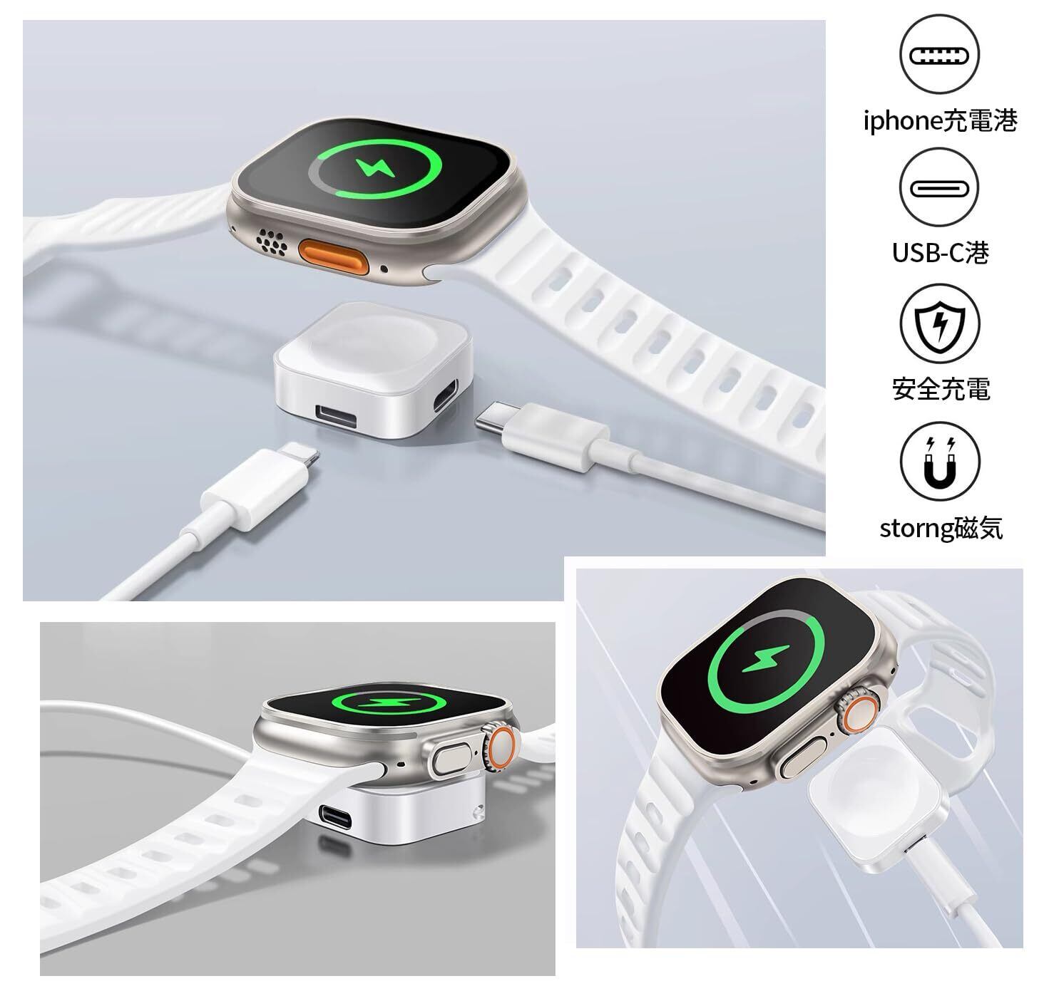 \【数量限定】2024年新型アップルウォッチ充電器は、apple Watch全機種対応USB-C/iPhone 2-in-1、急速充電 持ち運びに便利、WatchOSアップグレードシリーズを自動サポート、Watchをサポート、10/9/8/7/6/5/3/1/Ultra/SE/AirPods Pro全シリーズ/