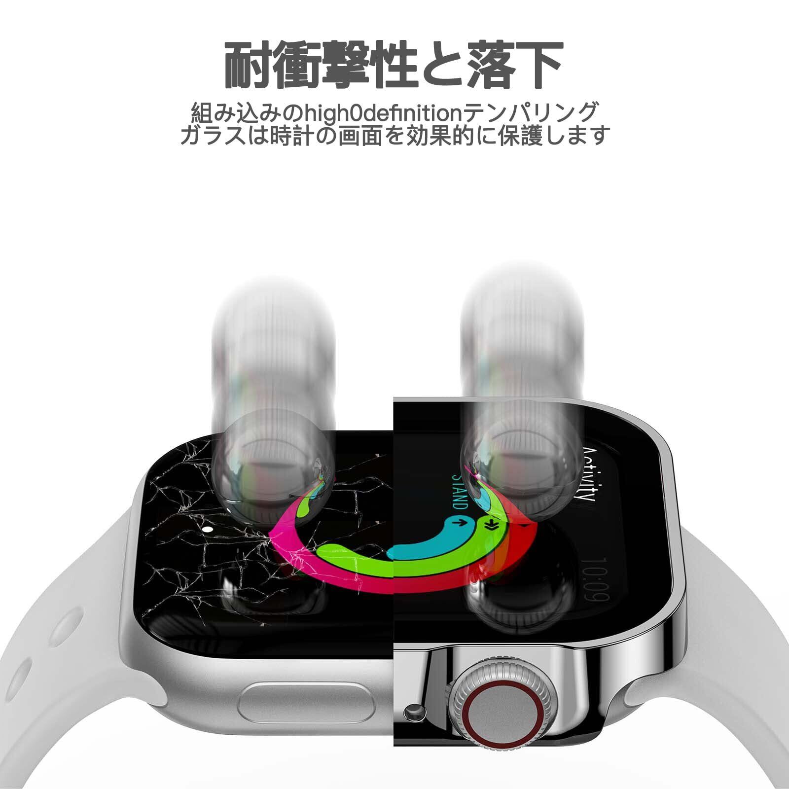 生活防水機能を搭載しているため、日常の水しぶきや汗からしっかりと守ります。また、高硬度9Hのガラスフィルムが衝撃や傷からしっかりと保護し、あなたのApple Watchをいつでも美しく保ちます。