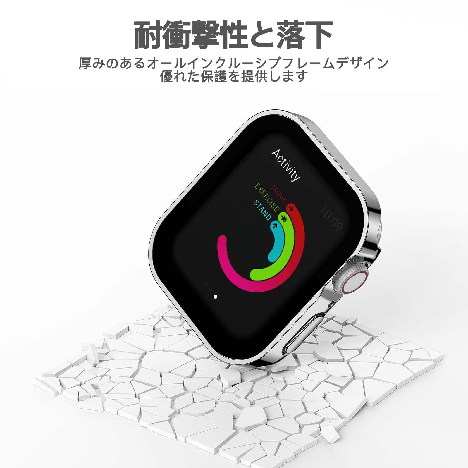 Singiuzoo Apple Watch 用 防水ケース 45mm 44mm 41mm 40mm アップルウォッチ ケース 3D直角エッジデザイン 保護 アップルウォッチ Series 6/SE/5/4 カバー ガラスフィルム 一体型 高透過率 硬度9H 一体型 光沢 軽量 全面保護 頑丈 耐衝撃 装着簡単 iwatch (44mm,光沢のシルバー)