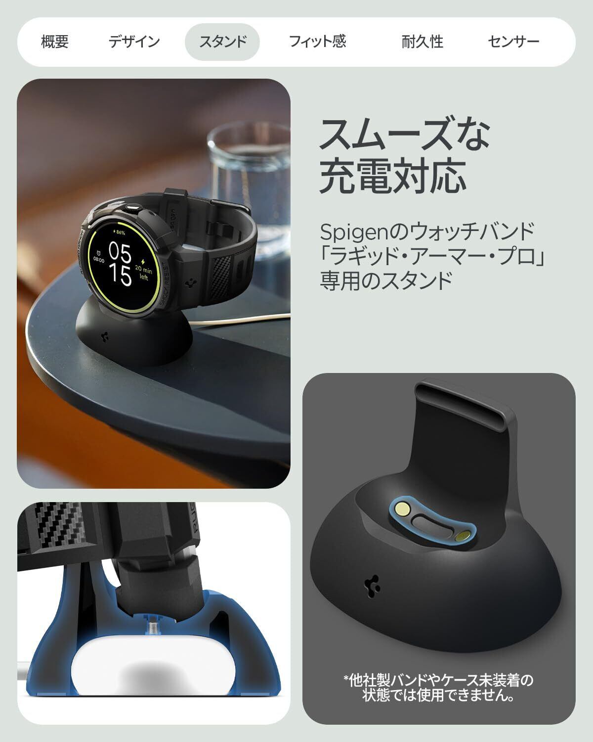 【専用充電スタンドカバー】Spigen製ケースやバンド専用に最適化された設計で、快適に充電できる「独自スタンドカバー」を提供します。*他社製ケースやケース未装着状態では互換性がありません。