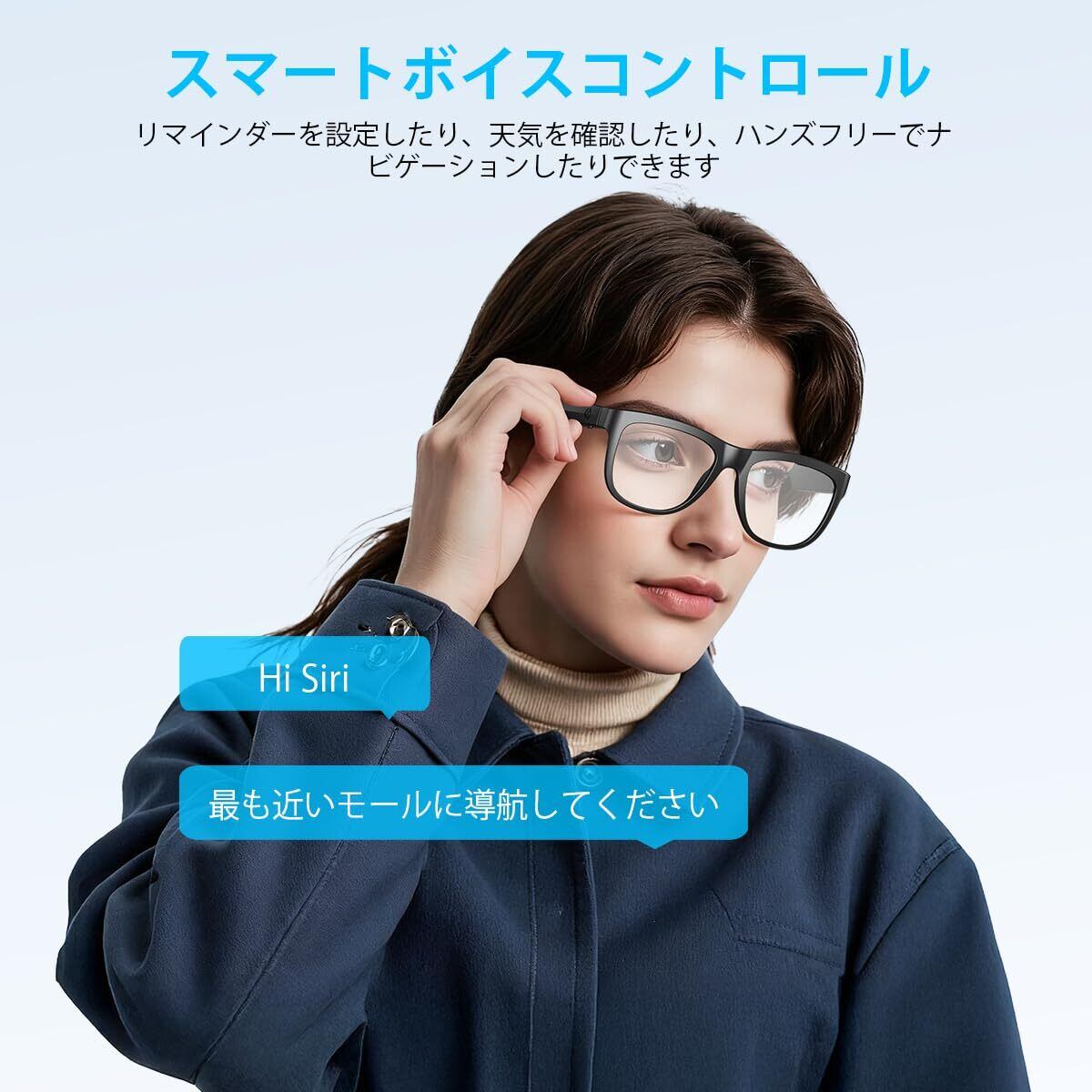 このオーディオグラスには、クリアな音質を実現したステレオスピーカーと、ハンズフリー通話に最適な内蔵マイクが搭載されています。外出先でも手軽に音楽を楽しみながら、通話ができ、アクティブなライフスタイルをサポートします。