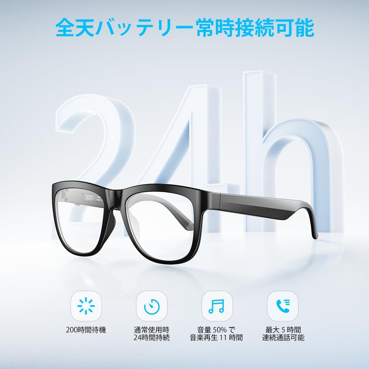 【智能音声制御、操作簡単】音楽の再生・一時停止、電話の管理、音声アシスタント機能の起動など、スマートブルートゥースグラスは簡単に操作できます。【高品質バッテリー、200時間待機】XOオーディオグラスは高品質バッテリーを採用し、満充電にはわずか2時間、連続再生8時間を実現。耐久性と安全性に優れ、待機時間は200時間のため、頻繁な充電は不要です。