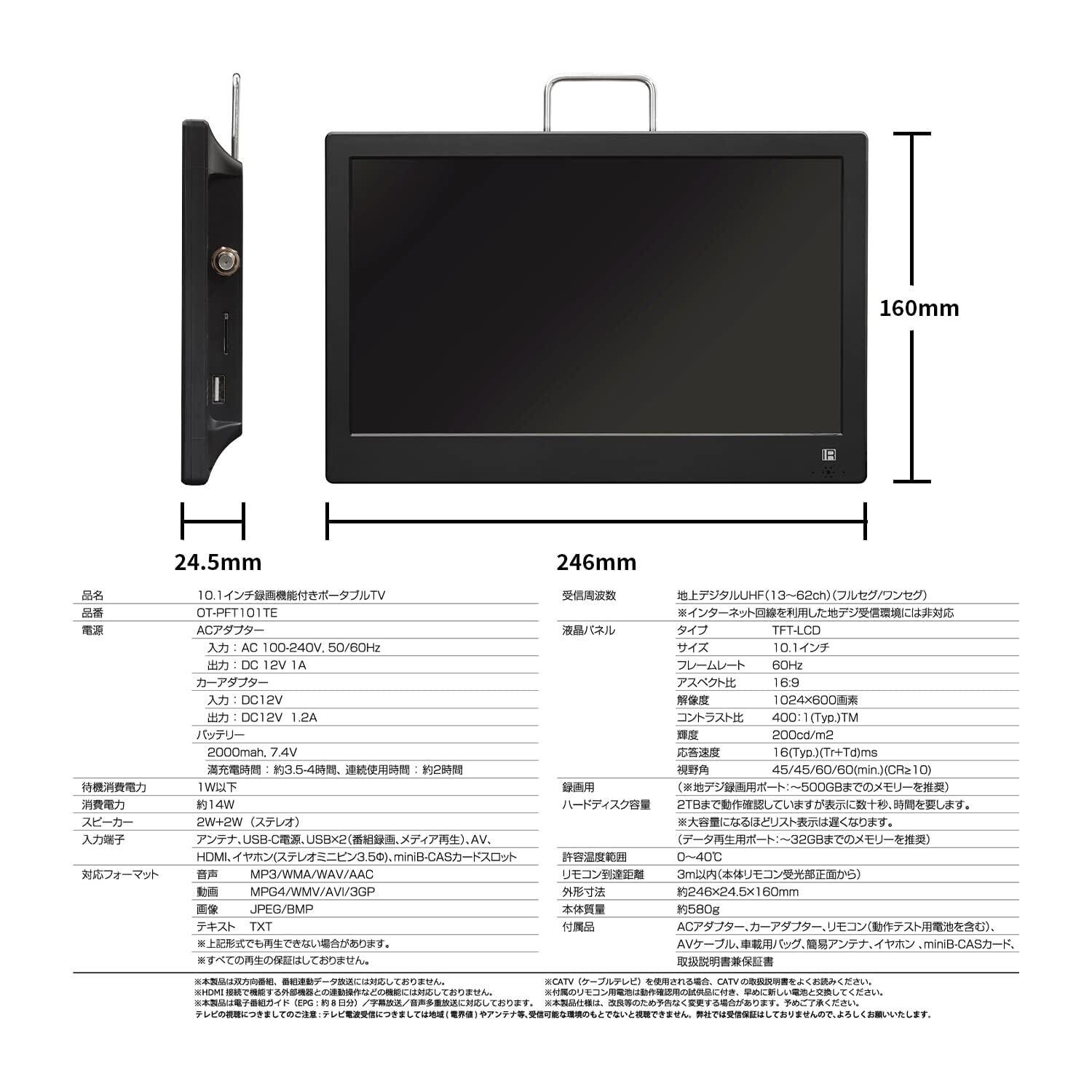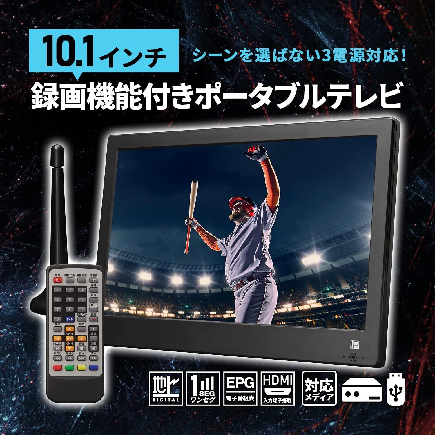 【在庫処分】[大阪Deco] 録画機能付き ポータブルTV 10.1インチ [3wayスタイル&録画機能搭載] 3電源(AC/DC/内蔵充電) アンテナケーブル 液晶テレビ 車載バッグ付き 地デジHDD録画機能搭載 フルセグ ワンセグ 自動切替 HDMI入力 USBデータ再生 壁掛け対応 音楽 USB 映像 TV 10 14 19 (10.1インチ)