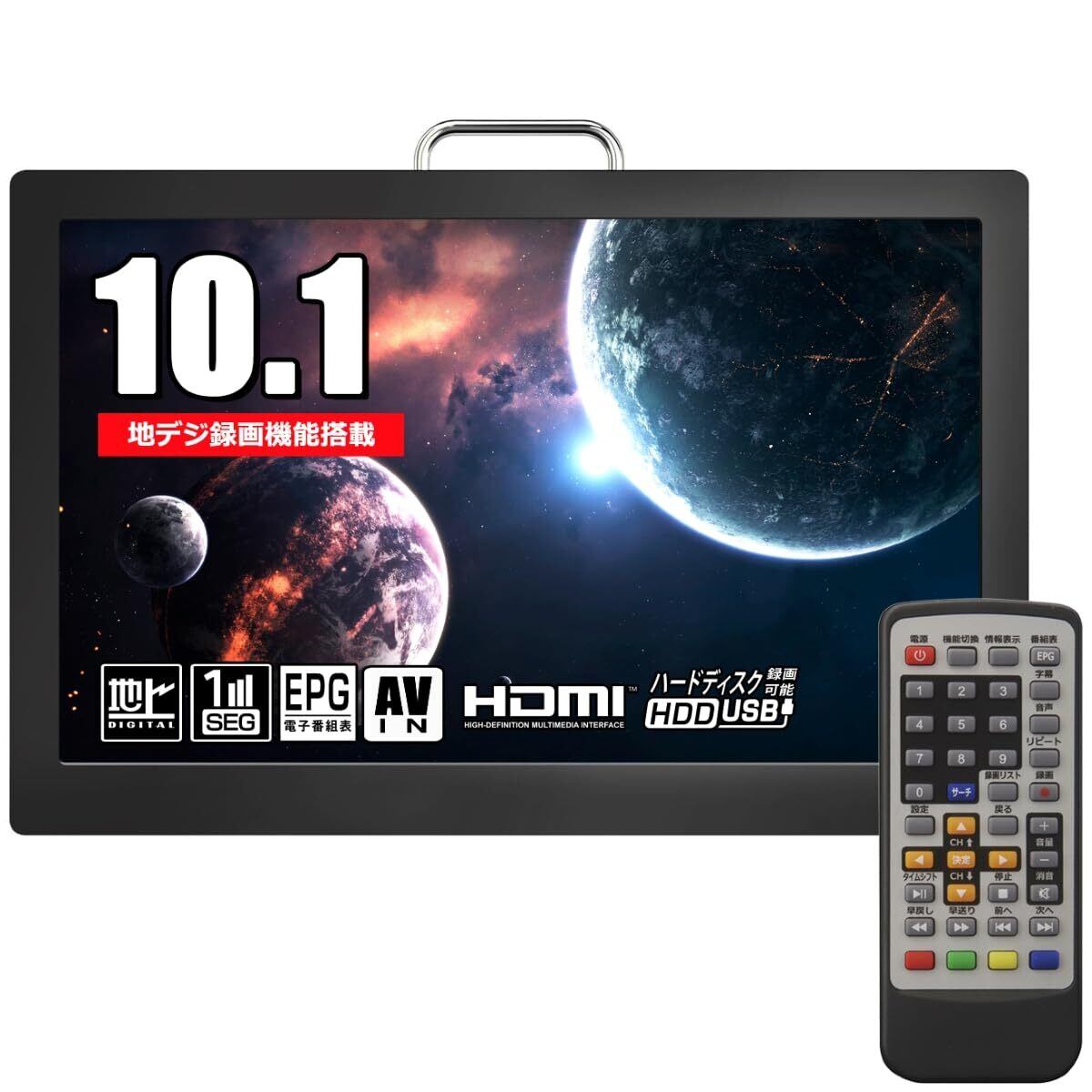 [大阪Deco] 録画機能付き ポータブルTV 10.1インチ [3wayスタイル&録画機能搭載] 3電源(AC/DC/内蔵充電) アンテナケーブル 液晶テレビ 車載バッグ付き 地デジHDD録画機能搭載 フルセグ ワンセグ 自動切替 HDMI入力 USBデータ再生 壁掛け対応 音楽 USB 映像 TV 10 14 19 (10.1インチ)