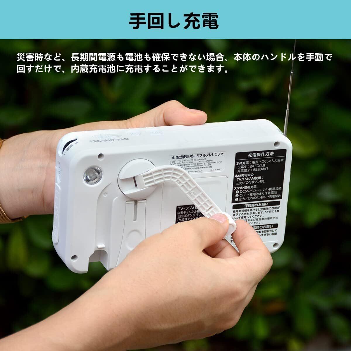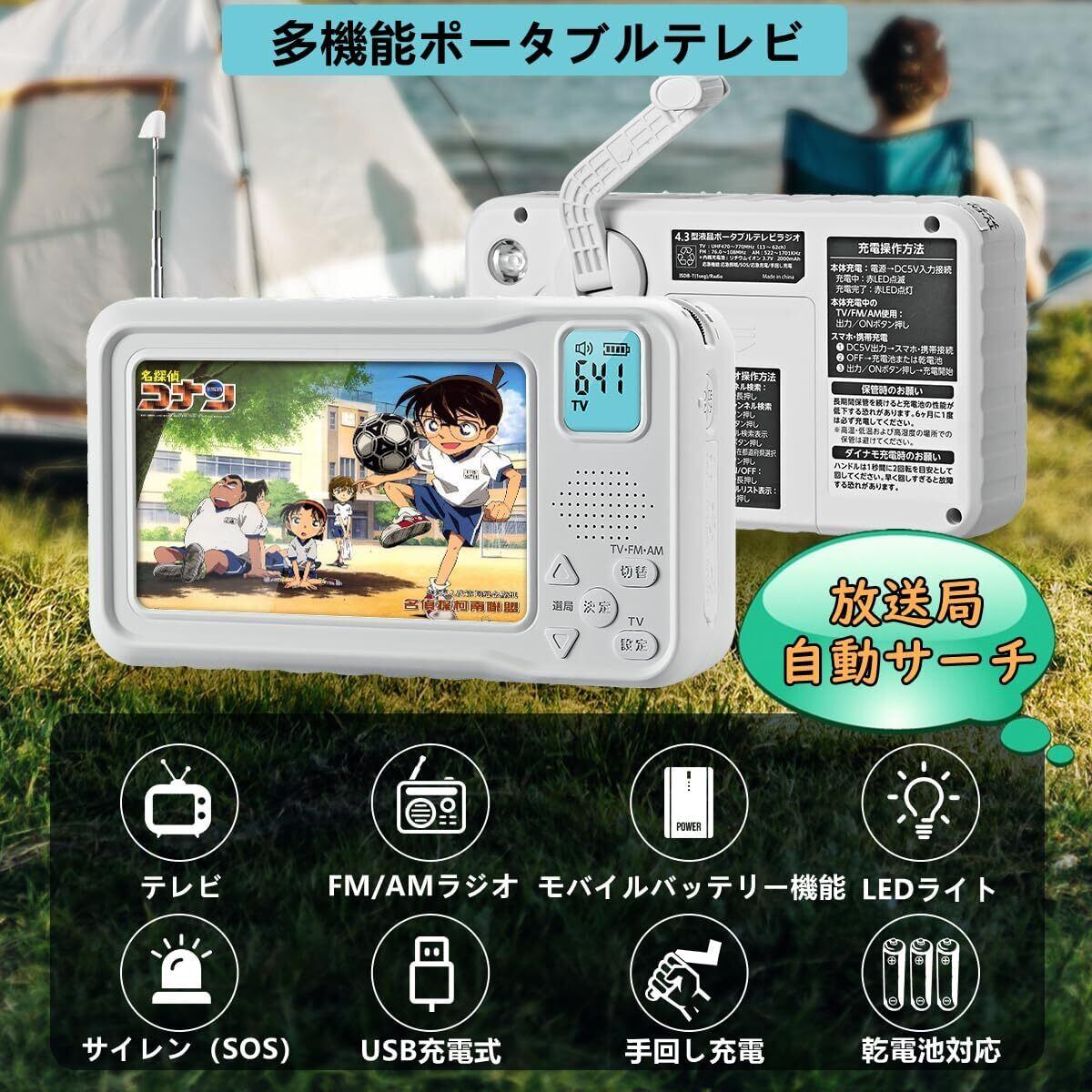【特価商品】【2025年アップデート版】 ポータブルテレビ ワンセグテレビ FM/AMラジオ 3WAY電源 小型 4.3インチ 手回し充電 USB充電式 ポータブル LEDライト付き SOSサイレン機能 携帯テレビ 防災ラジオ イヤホン接続可 持ち運び 3年品質