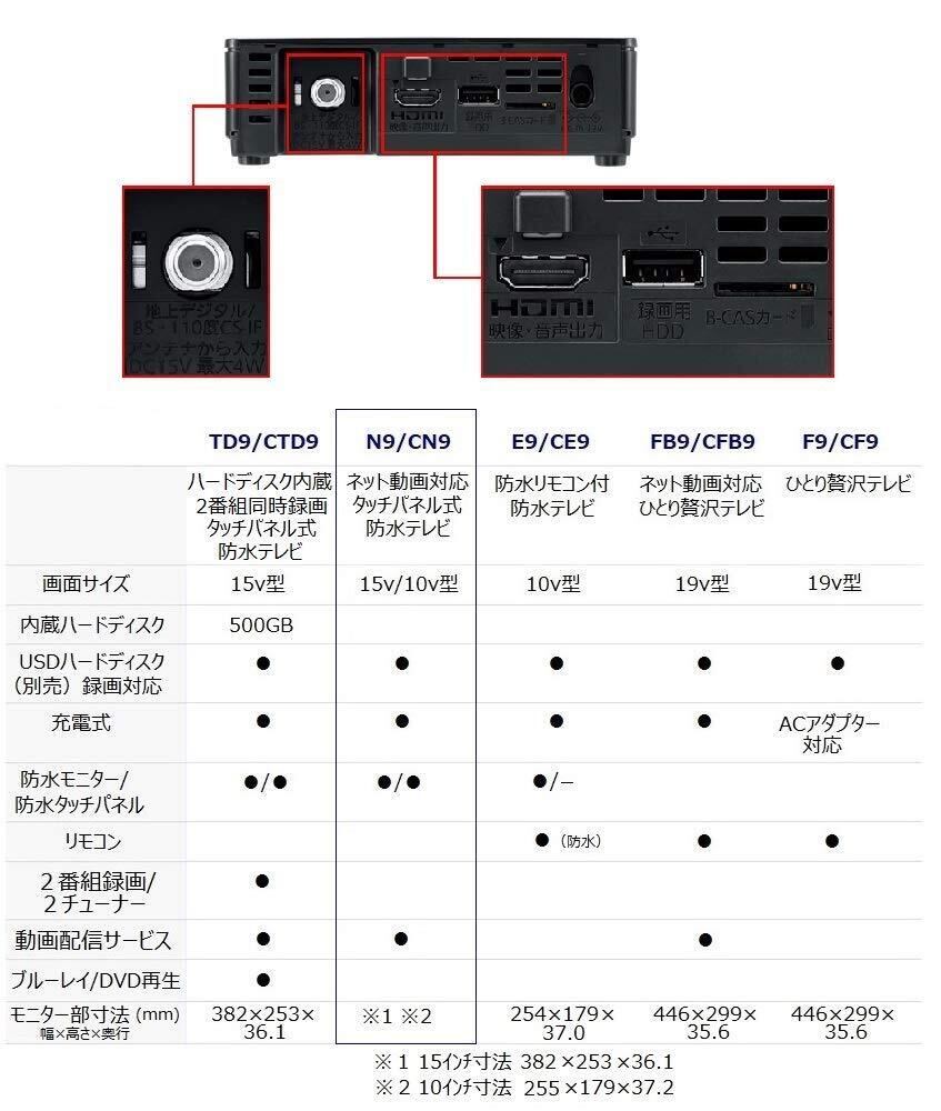 【消費電力】(チューナー部動作時)※付属の専用ACアダプター使用時:約9W(本体 約8W)、(モニター部動作時〈充電中〉)※付属の専用ACアダプター使用時:約12.5W(本体 約11W)