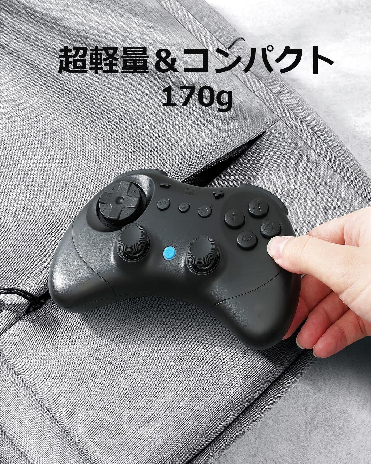 【最高な機能】格闘ゲームに最適な8方向十字キー、触覚デジタルトリガー、コンパクトなサイズ(14.99×9.91×3.05 cm)、軽量(178.6g)、スティックのデッドゾーン調節可能、Turbo機能搭載する素敵なゲームパッドです。800mAhのバッテリー(最大20時間連続使用対応)、保護ケース付きでアウトドアでもゲームを楽しめます。