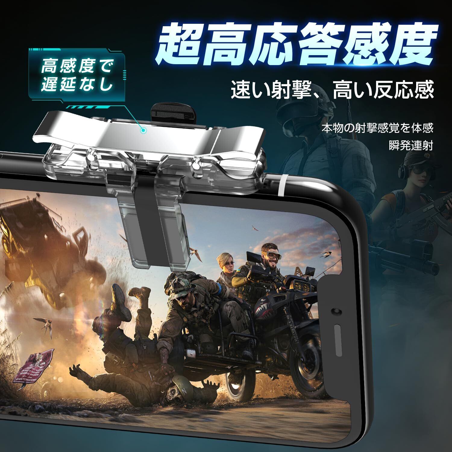 【高感度・小体積】メッキ加工材採用、導電性と感度が高めました。安定した高速応答を実現。「単一クリックは明確で、連続クリックは決して中断しない」という優れた性能を持っています、これまでのシューティングゲームコントローラの中では最高級品です。また、PUBG Mobile コントローラーは軽量型ので持ち運びやすくて、場合と問わず、すぐにゲームを楽しむことができます