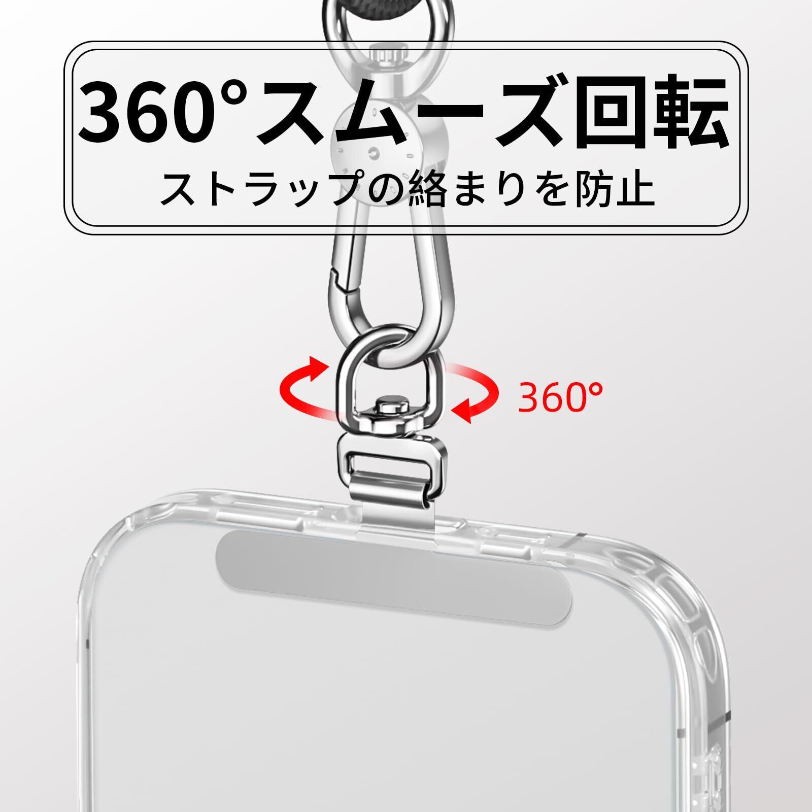 【360°滑らか回転でストラップ絡みを根本解決】独自のベアリング構造で、あらゆる方向にスムーズに回転。従来品によくあるストラップの絡みつきイライラから解放され、電車内や自撮り時も片手で滑らかに操作可能
