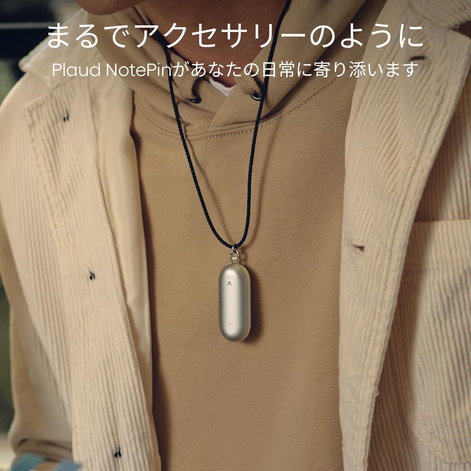 【携帯性と紛失防止の向上】NotePinを首にかけて身につけることで、移動中や作業中も、いつでもすぐに録音できます。NotePinの持ち運びをより便利にする一方、うっかり落とす心配も軽減されます。