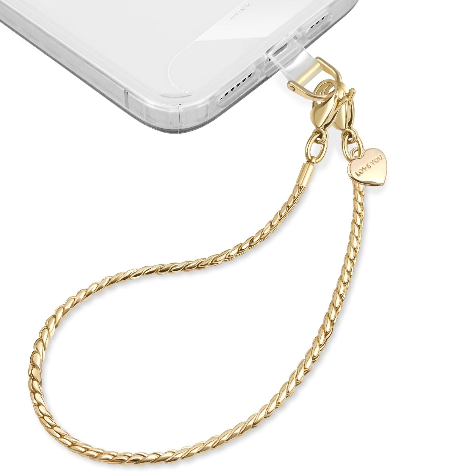 [UKON] スマホストラップ 携帯ストラップ チェーンストラップ 手首 斜め掛け用 金属製 軽量 紛失/落下防止 外出 旅行用 パッチ2枚付き ゴールド Short