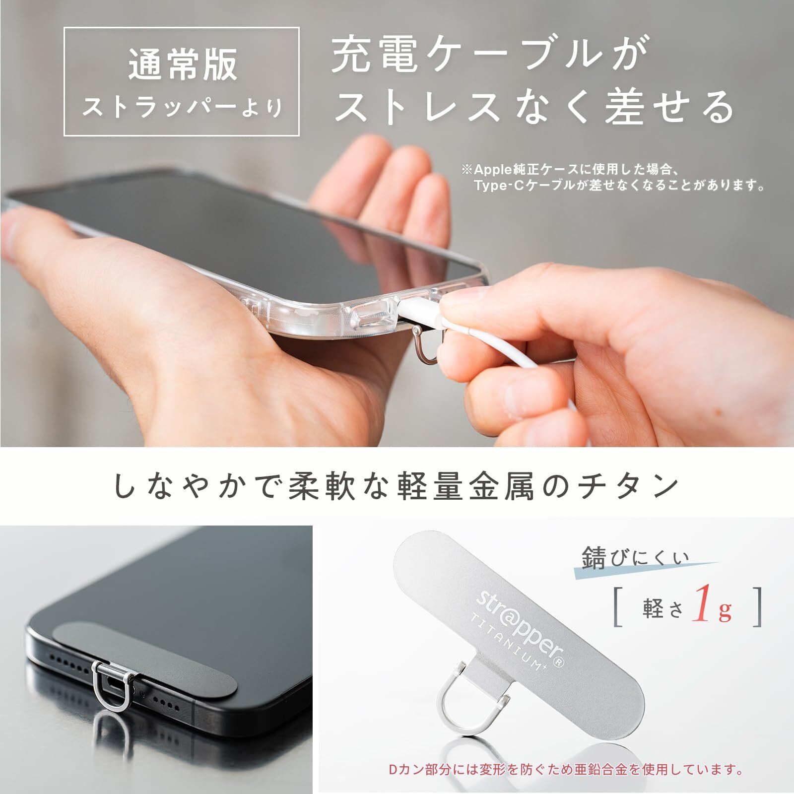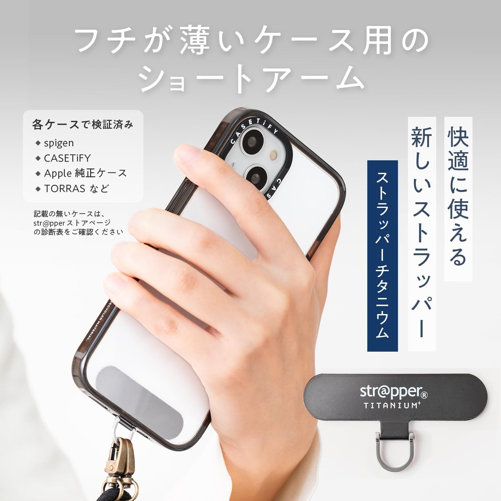 【在庫処分】strapper ストラッパー チタニウム 【極薄・丈夫なチタン製】 スマホ iphone ストラップ ストラップホルダー 落下防止 携帯ストラップ ショートアーム