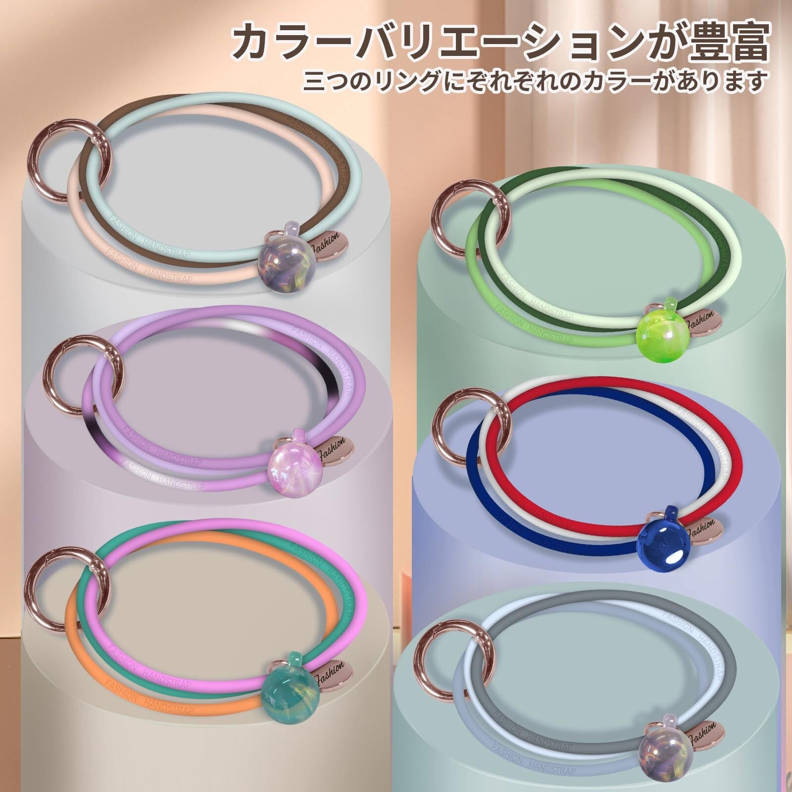 「三つのリングに三つの色、おしゃれな携帯ストラップ」リング丸一個のデザインと違い、軽さ重視のために三つのシリコーンリングに変わり、しっかりホルダーしながら手への負担も少なくなります。三つのリングにそれぞれ色があるため、スマホと組み合わせとおしゃれな気分になります。