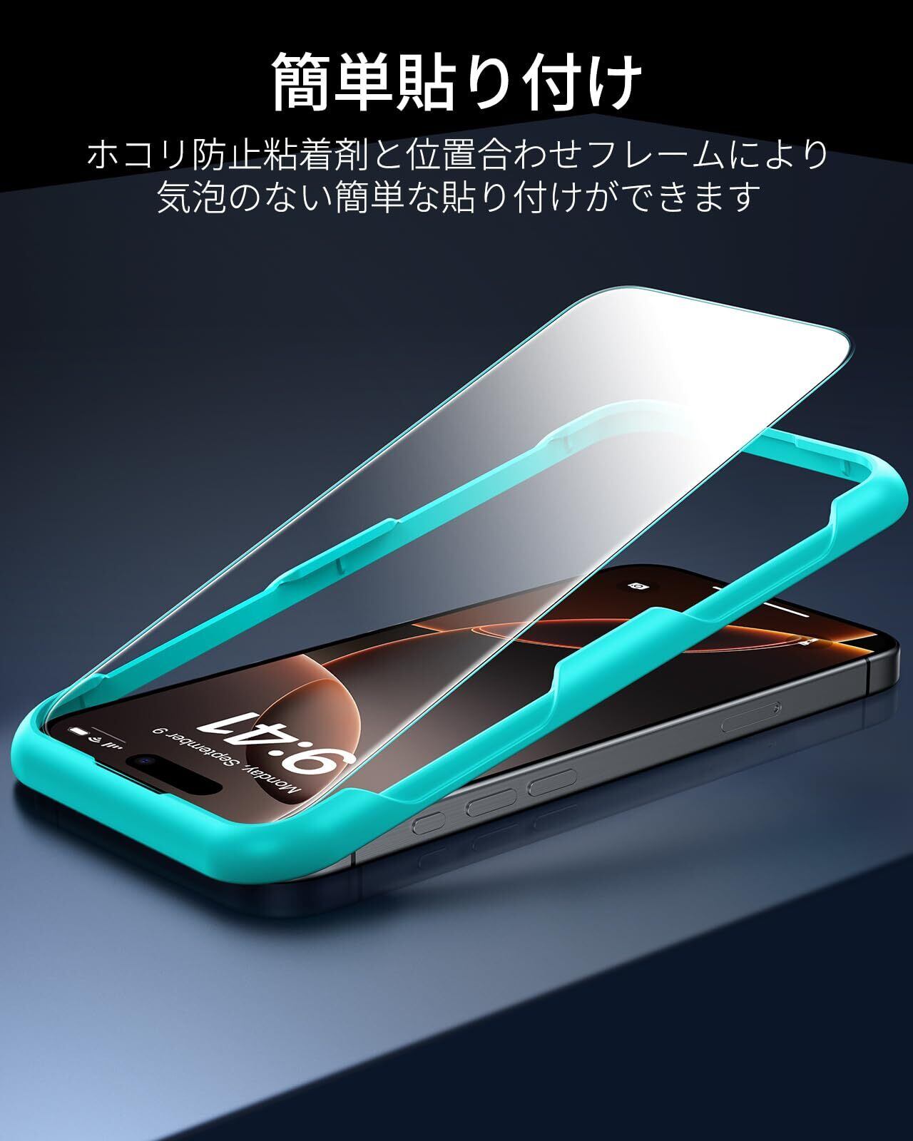 ESR iPhone 17 ガラスフィルム iPhone16Pro保護フィルム 3枚 強化ガラス いphone16pro/17 保護フィルム 簡単取り付けツール付き 高い透明度 iphone17/16pro ガラスフィルム 硬度9H 軍事規格の飛散防止力 耐傷性 0.3mm超薄 HD アイフォン16プロ/17対応