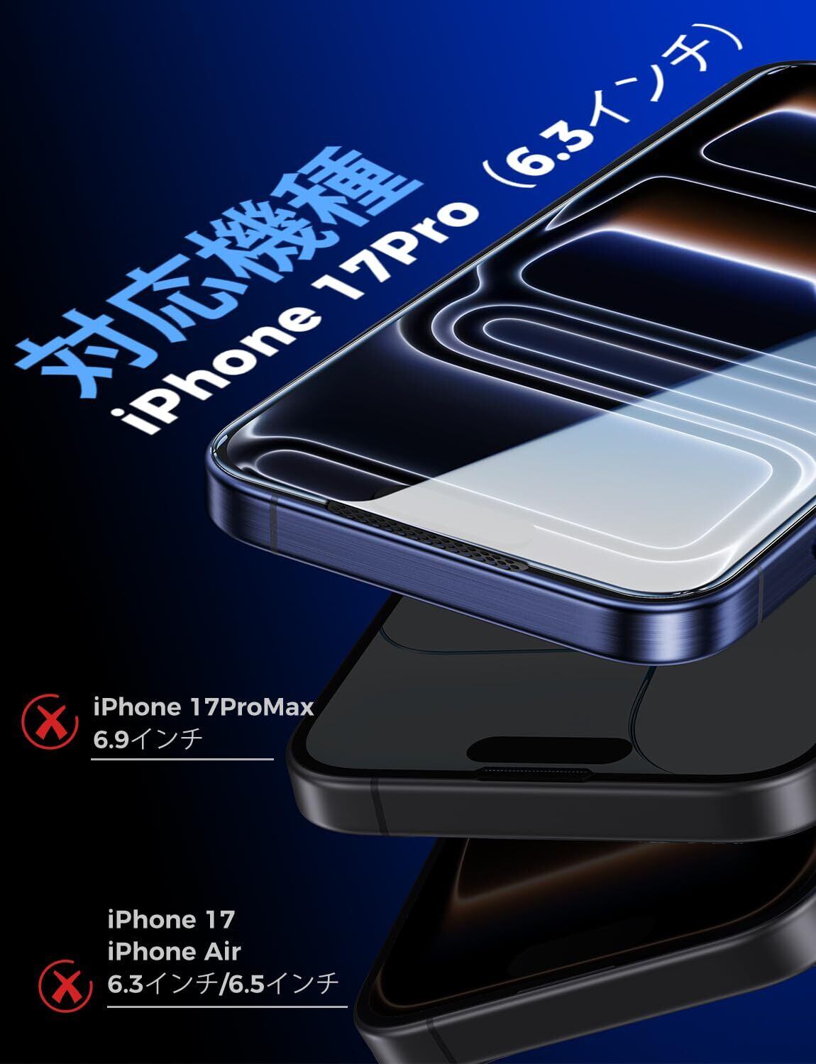 【もう失敗はしない】本製品は対応 iPhone 17 Proに対応するガラスフィルム2枚セットです。百万以上の欧米ユーザーのフィドバックを集めて日々改善したガイド枠は、3歩だけで保護フィルムを貼り付けます。そのうえ、自動ホコリ取りデザインだけでなく、ガイド枠のスロープデザインで、空気を順序に取り除くことができて、初心者でも気泡レスのまま綺麗に貼れます。