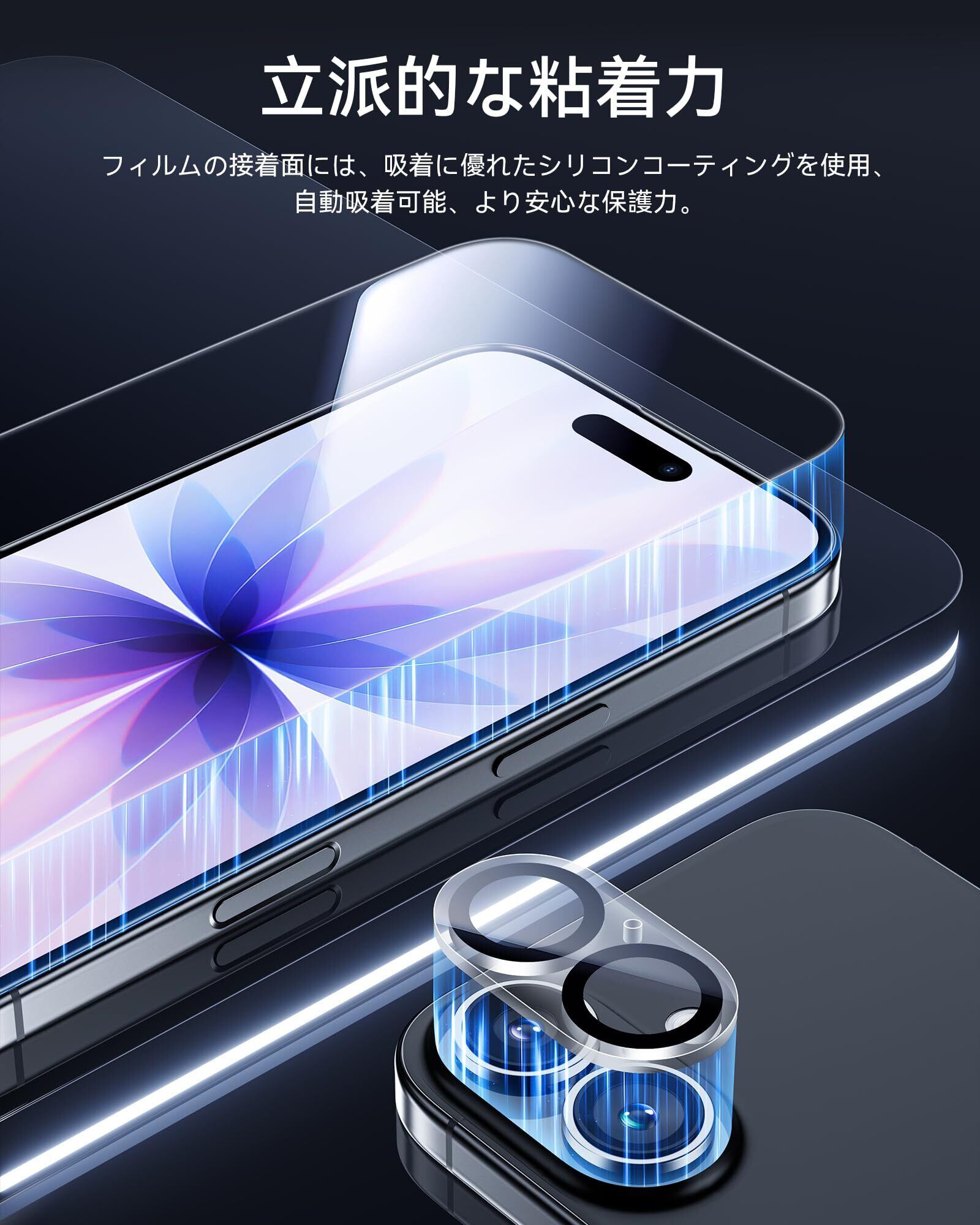 こちらのガラスフィルムはiPhone 17専用に設計されており、強化ガラスを使用することで、スムーズな操作性を保ちながら、ディスプレイやカメラを様々な衝撃から強力に保護します。硬度9Hのしっかりした設計で、日常の使用において安心感を提供します。