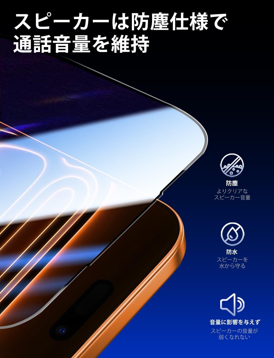 【スピーカー保護】本製品(強化ガラスフィルム)は完全にスマホ本体のスピーカーを覆うことでなく、メッシュデザインでホコリ防止、防水などが可能です。なお、スピーカーの作動にも影響なく楽に使えます。