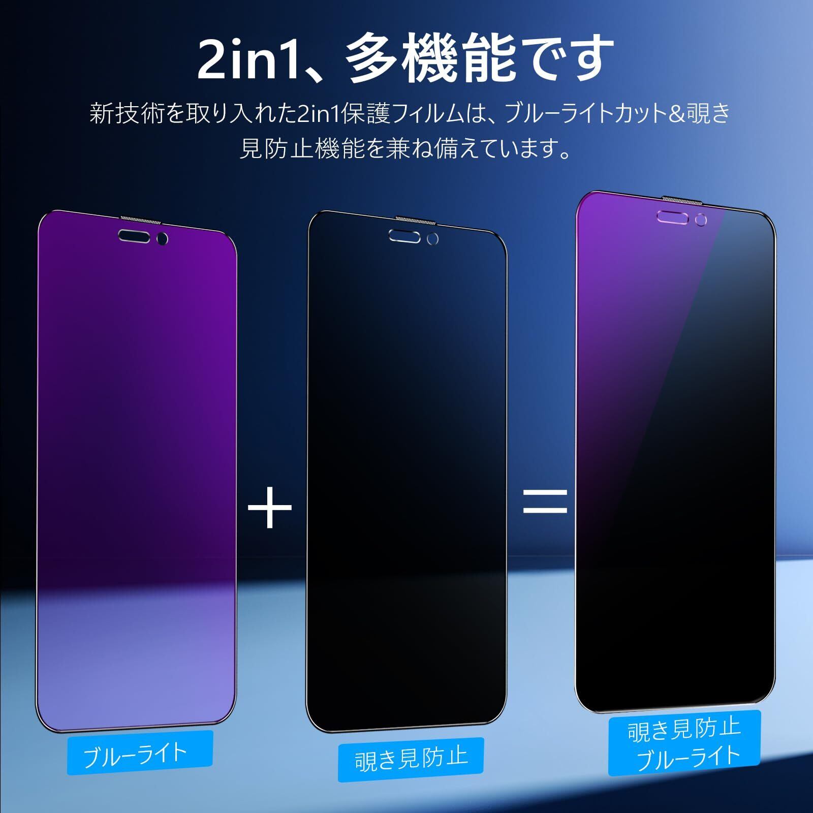 【覗き見防止 + ブルーライトカット】 対応 iPhone 17 ガラスフィルム 覗き見防止 ブルーライトカット 【1枚】 いPhone17 フィルム ブルーライト のぞき見防止 あいふおん17 保護フィルム プライバシー 目の疲れ軽減 高感度タッチ [ガイド枠付き/iPhone 17 カメラフィルム 付き]