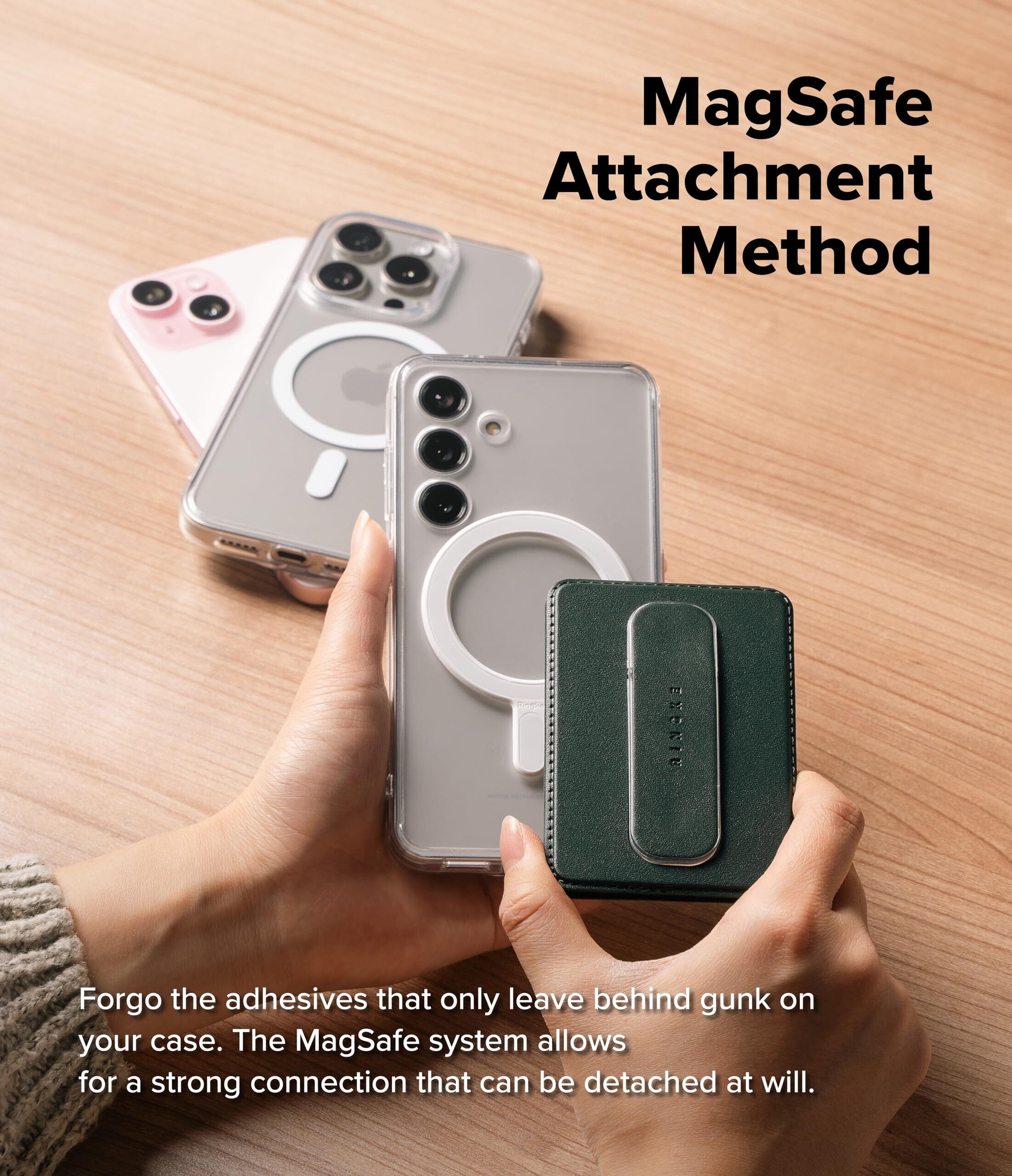 [Ringke] Card Holder Slide Grip Wallet Magnetic スライドカードホルダー SUICA PASMO Magsafe対応 最大2枚 カード収納 スタンド機能 定期入れ マグネット スマホカードケース カードホルダー カード入れ - Dark Green