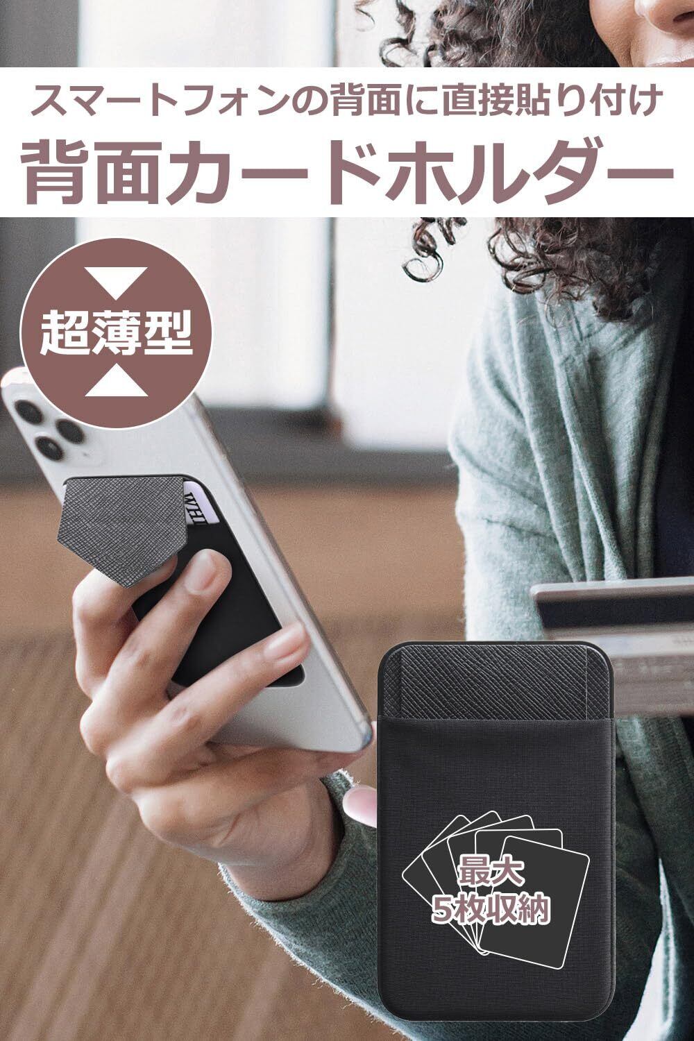 [プリマミーレ] スマホカードケース カードポケット スマホ カードホルダー カードケース 張り付け 背面ポケット 落下防止 薄型 取り外し可能 粘着 シール 後付け, PE-O0002