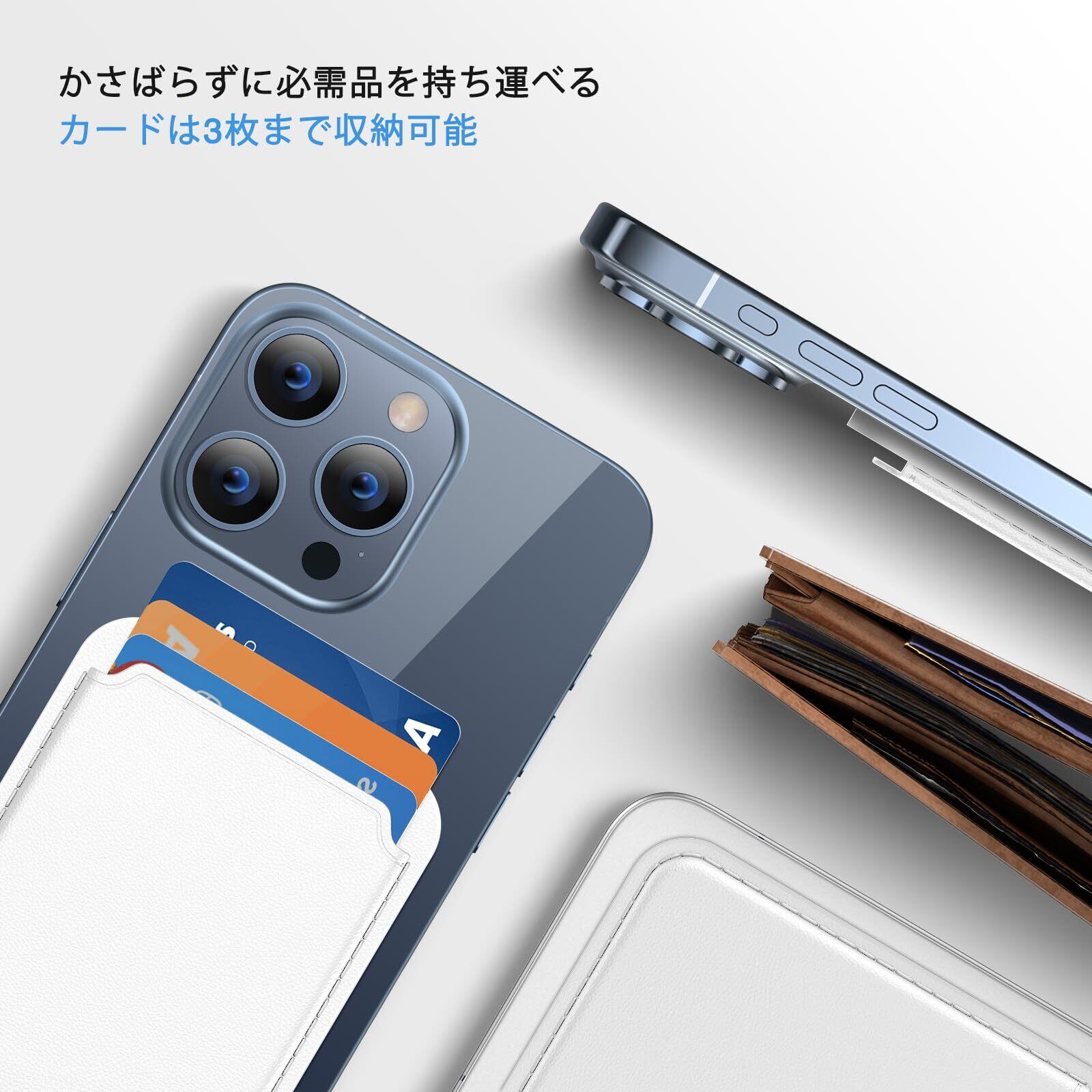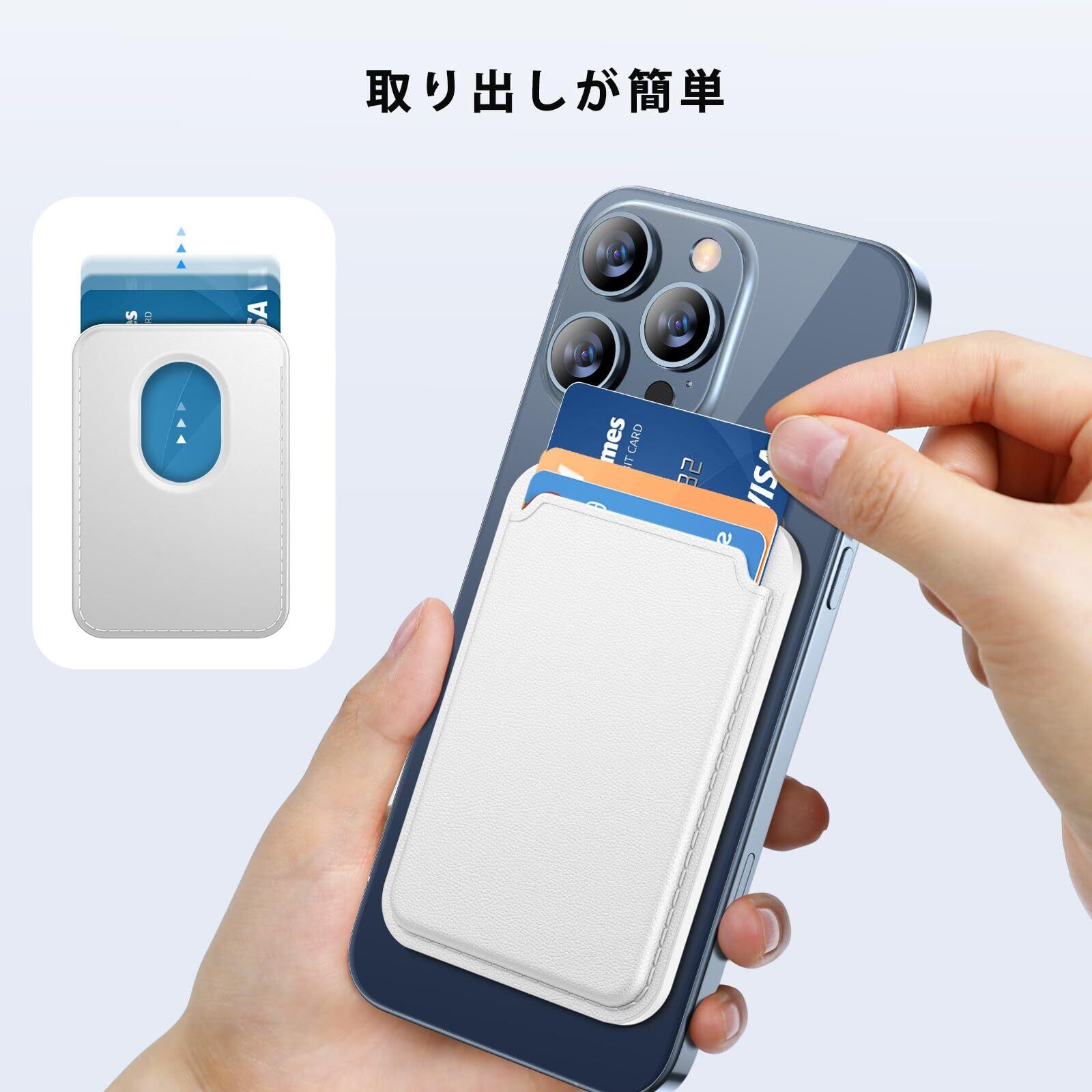 Miracase MagSafe 対応 カードケース スマホ カードホルダー レザーカードウォレットホルダー iPhone 16/15/14/13/12シリーズに対応 カード入れ 強力磁力 3枚 カード収納 マグネット内蔵 白