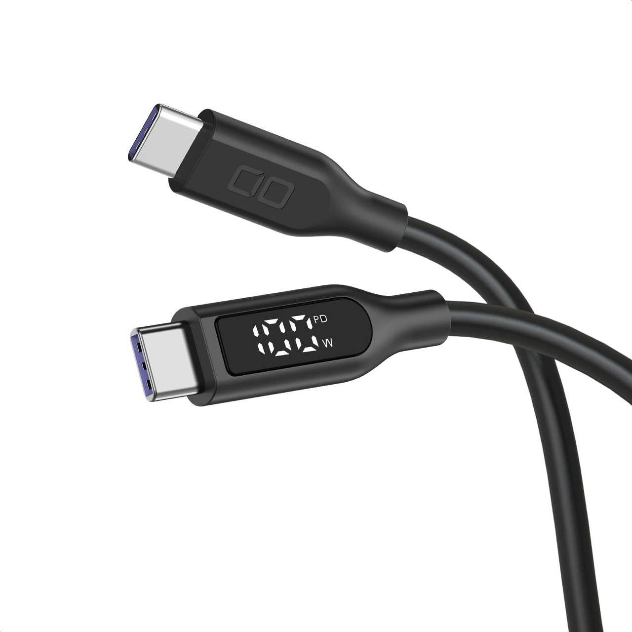 【在庫セール】CIO 柔らかいシリコンケーブル 液晶ディスプレイ搭載 USB type-C 充電ケーブル 100W対応 iPhone 17 / 16 / 15 タイ プC usb type c to c 【液晶部に保護フィルム有】(1m, ストレート, ブラック)