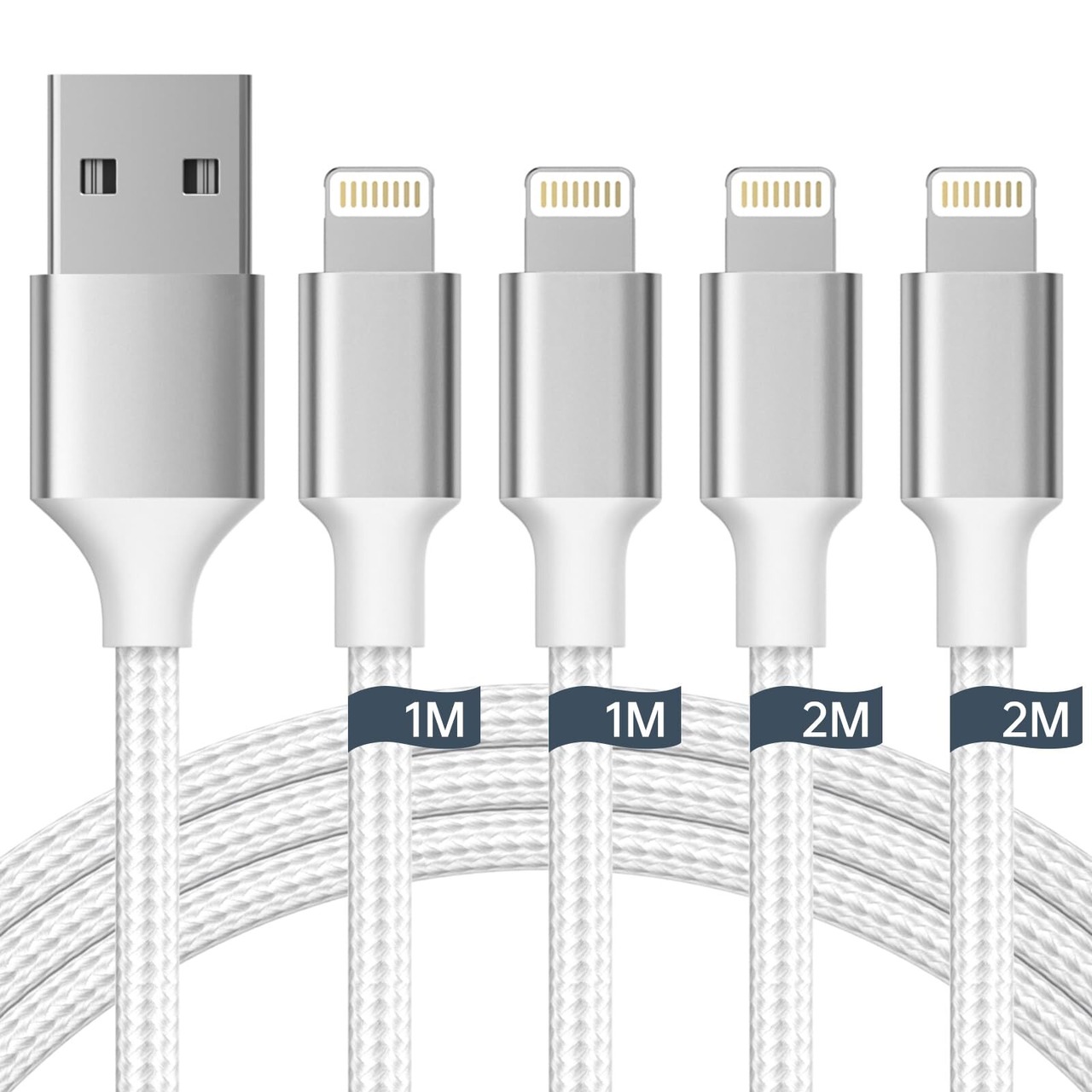 \【在庫セール】iphone 充電ケーブル【1M/2M 各2本 MFi認証品】ライトニングケーブル 充電器 ケーブル 高速データ転送 最大2.4A急速充電 USB A-lightning ナイロン編み 断線防止 超高耐久iPhone14/14 Pro/13/13 Pro/12/11/X/8/8plus/7/6/iPad 各種対応 /