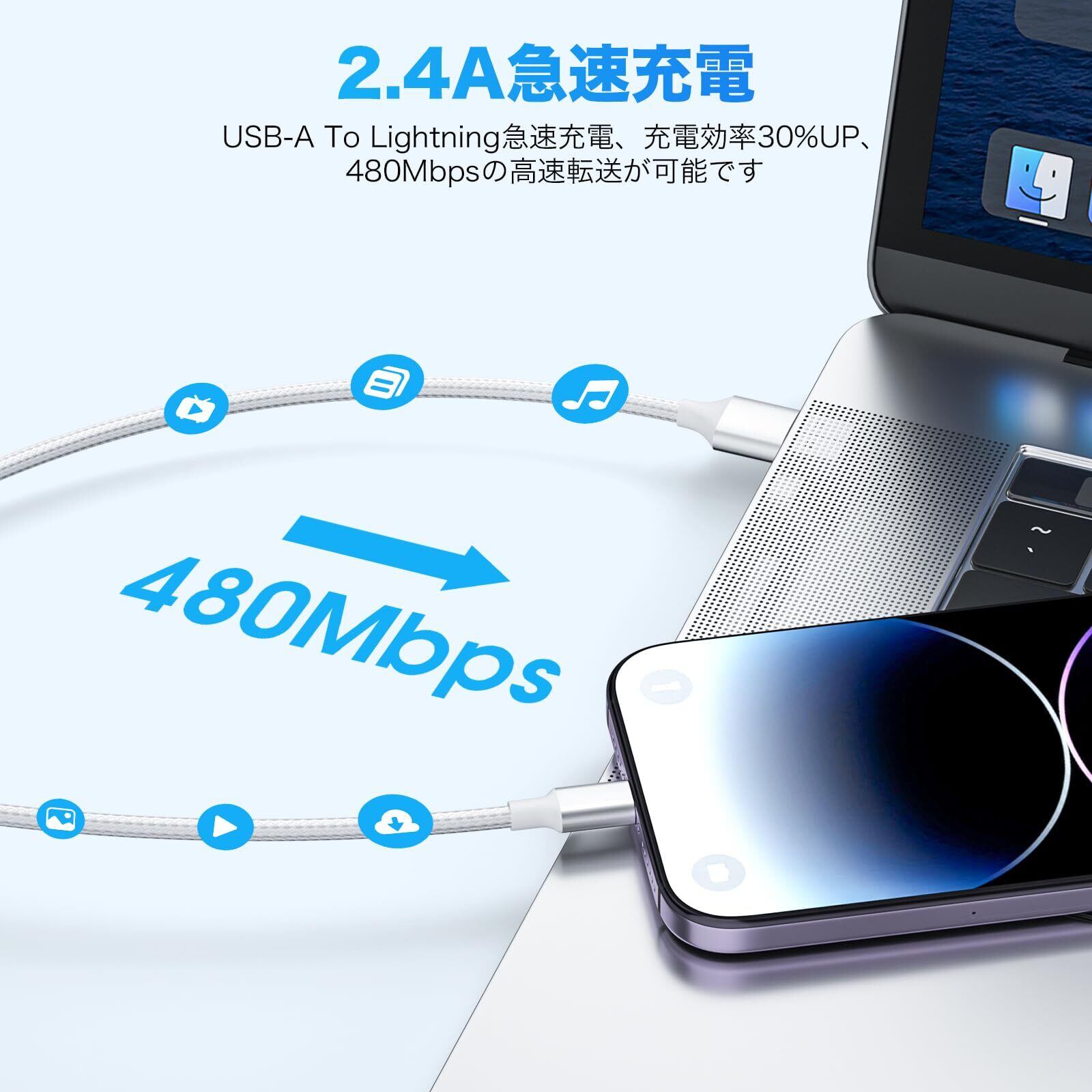 【2.4A急速充電&データ転送】:iPhone 充電ケーブルは最大2.4A急速充電、採用された高品質な銅線は電気抵抗が低く、充電時間を短縮してくれます。また、コネクタは耐熱アルミニウム合金端子を採用しており、導電率が良くデータ損失も最小限に抑えます。最大転送速度は480Mbpsでデバイスの同期と充電を同時に行うことができます。
