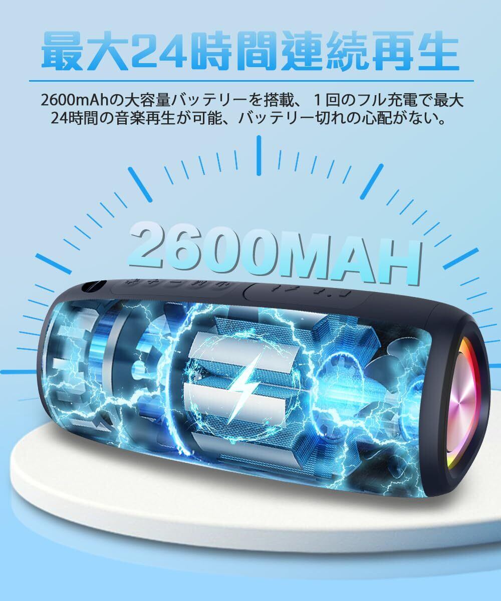 【在庫セール】Bluetooth スピーカー【2025最新型】ワイヤレススピーカー 24時間連続再生 強化された低音 Bluetooth 5.3 完全ワイヤレスステレオ対応 TWS機能 Type C充電式 LEDライト付き マイク内蔵 ハンズフリー通話 IPX7防水 小型 持ち運びやすい お風呂で使用可能 日本語取扱説明書 ダーク