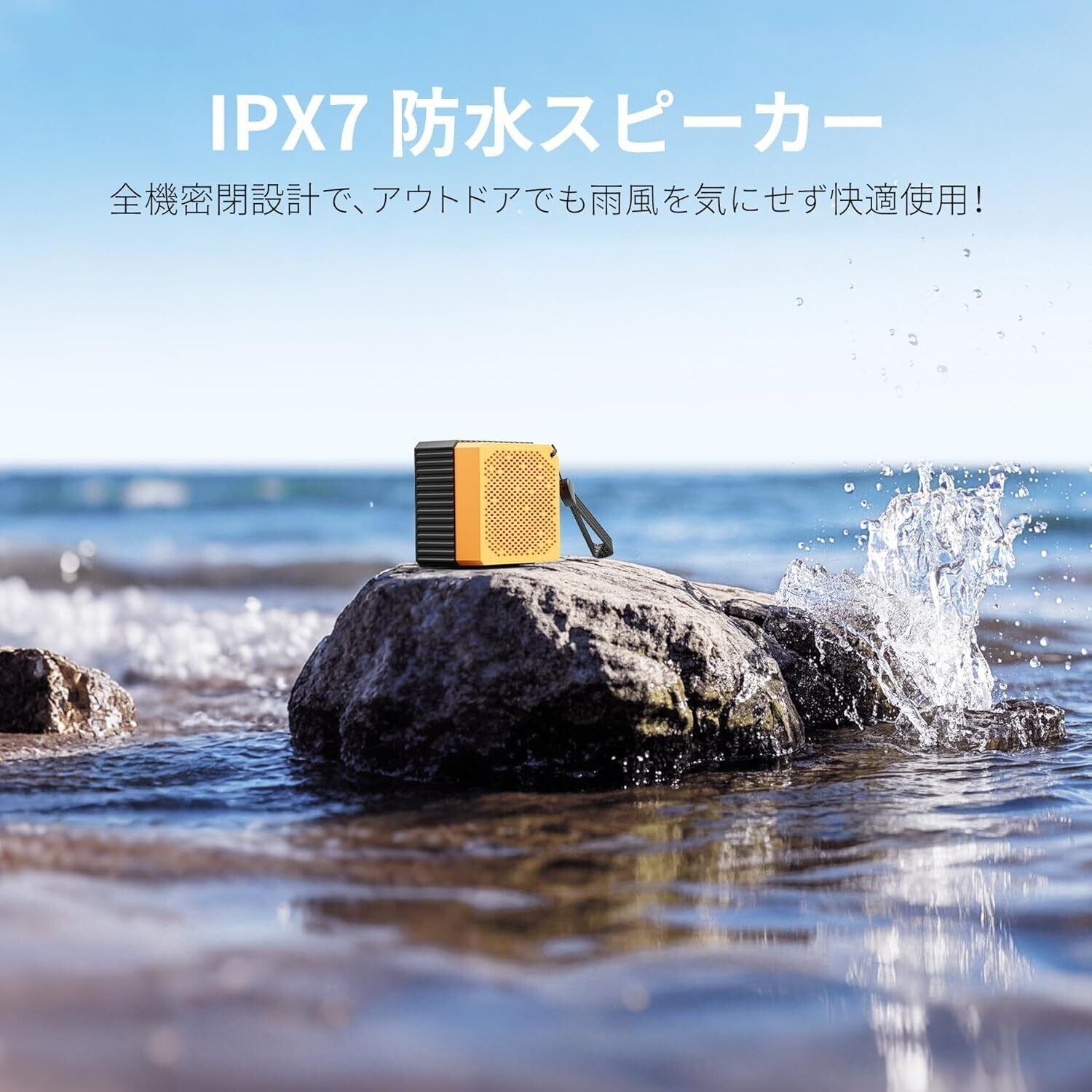 IPX7等級の防水性能を備えているため、雨の日や水しぶきを気にせずに使用できます。お風呂でのリラックスタイムやビーチでの音楽体験を、ストレスフリーに楽しめます。