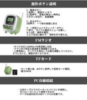 【ご利用上の注意】① 期間: 3年間 (※交換・修理サービス / 年中無休)。② システム設定では「言語 / 操作音 / Bluetooth / 時間表示 / ロック画面 / 自動電源オンオフ / 工場出荷状態へのリセット」などに対応。③FMラジオを聴取する場合は、アンテナを伸ばし、受信状態の良い方向へ調整してください (※アンテナを伸ばしていない場合、雑音が入る場合があります)。④TFカードスロットは本体底面にございます。最大対応容量は64GBです。⑤ PCと有線接続する場合は、データ転送対応のUSBケーブルをご使用ください。⑥ ピクセルアートアニメーションはアプリ内で閲覧可能です。快適なご利用のため、事前のダウンロードをおすすめします。⑦製品のご利用に関してご不明点がございましたら、どうぞお気軽にカスタマーサポートまでお問い合わせください。心よりお待ち申し上げております。