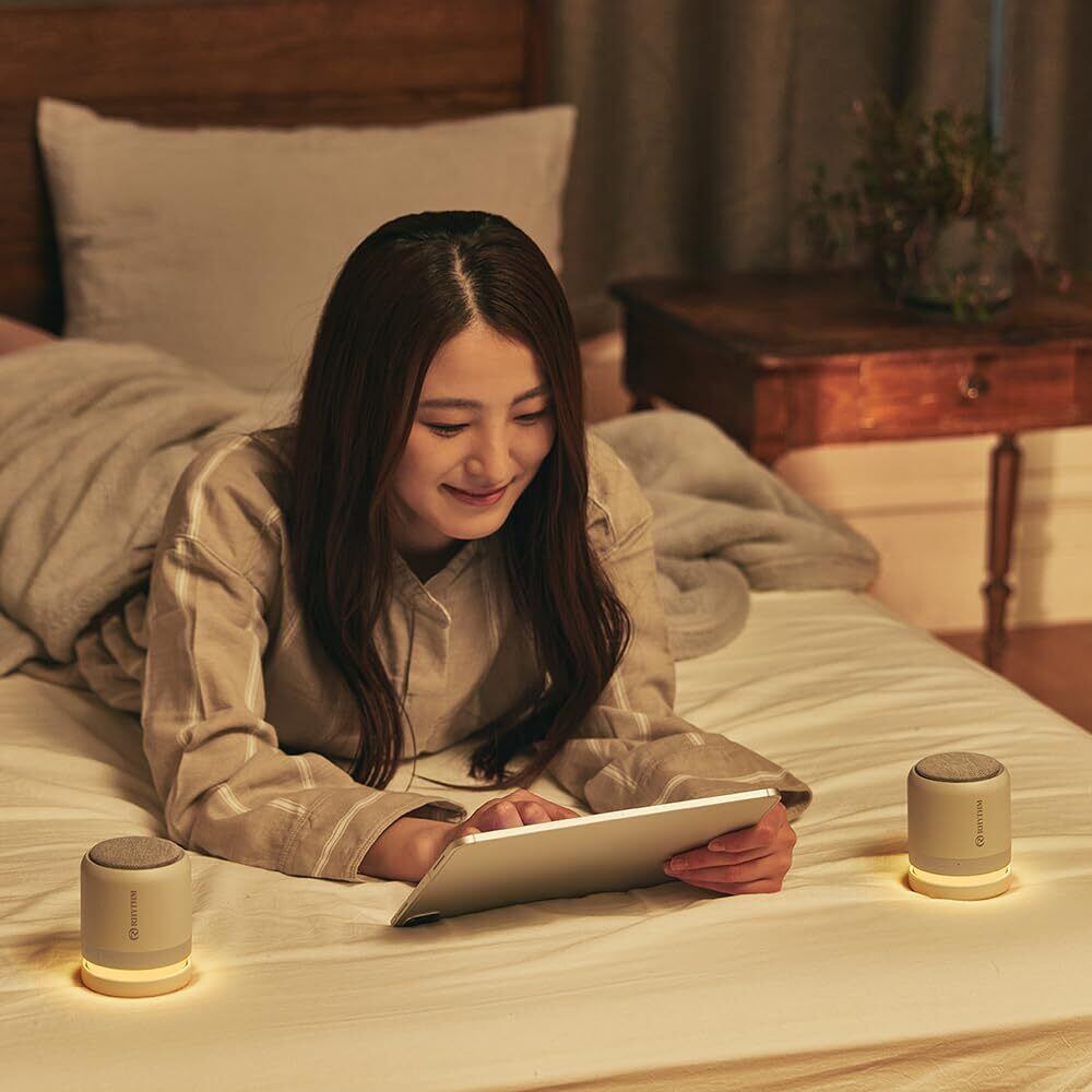 【電源をつけるとあかりが灯ります】ライトの明るさは「変光モード/強/弱/消灯」から選ぶことができ、くつろぎのシーンや時間に合わせて調節することができます。変光モードに設定すれば、音に合わせて、あかりがやさしく灯ったり消えたりし、視覚でも心地よいくつろぎをもたらします。