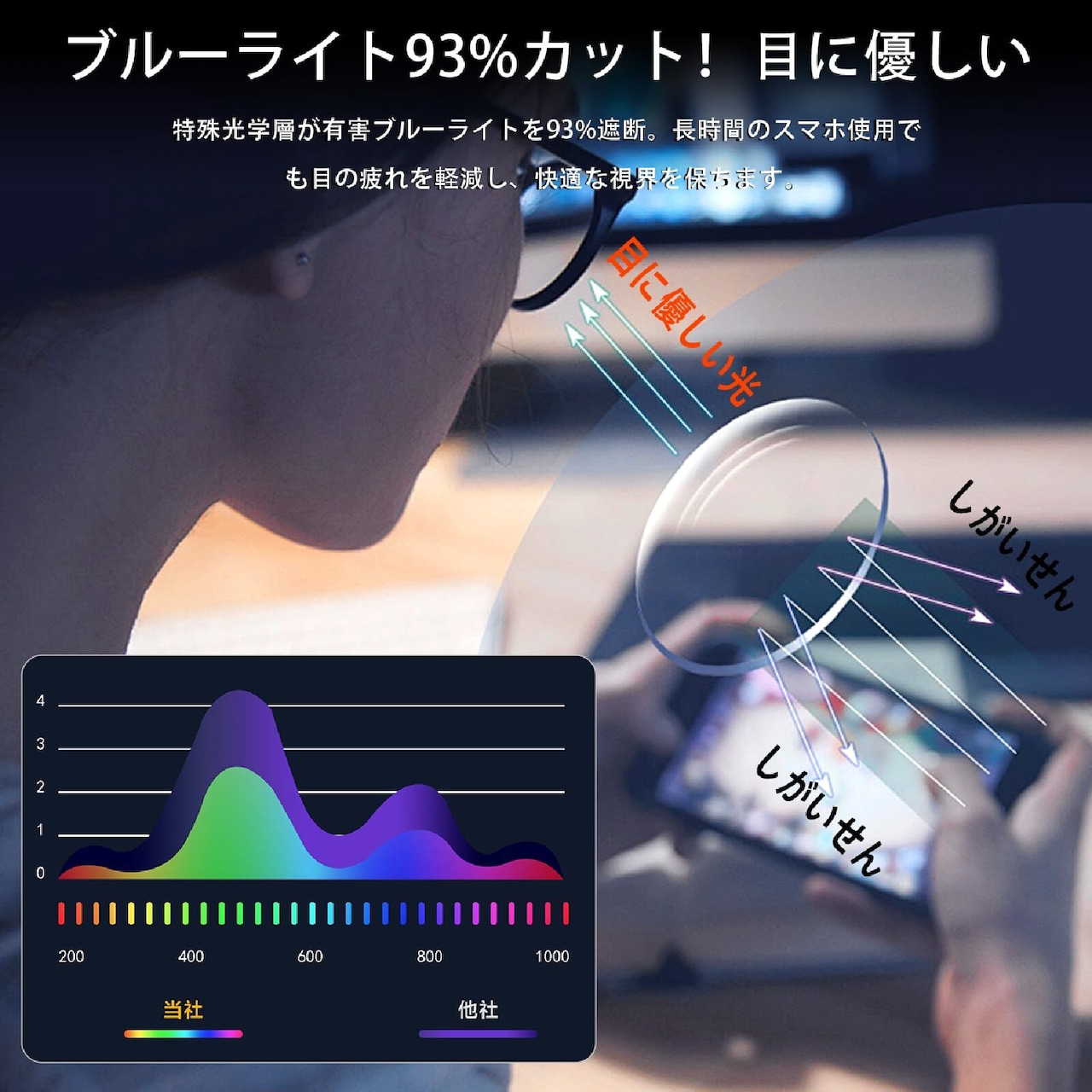 【ブルーライトカット機能】ブルーライトカット反射技術、目に掛かる負担を軽減し、視力障害を拒否します。長い時間使っても目が疲れません。