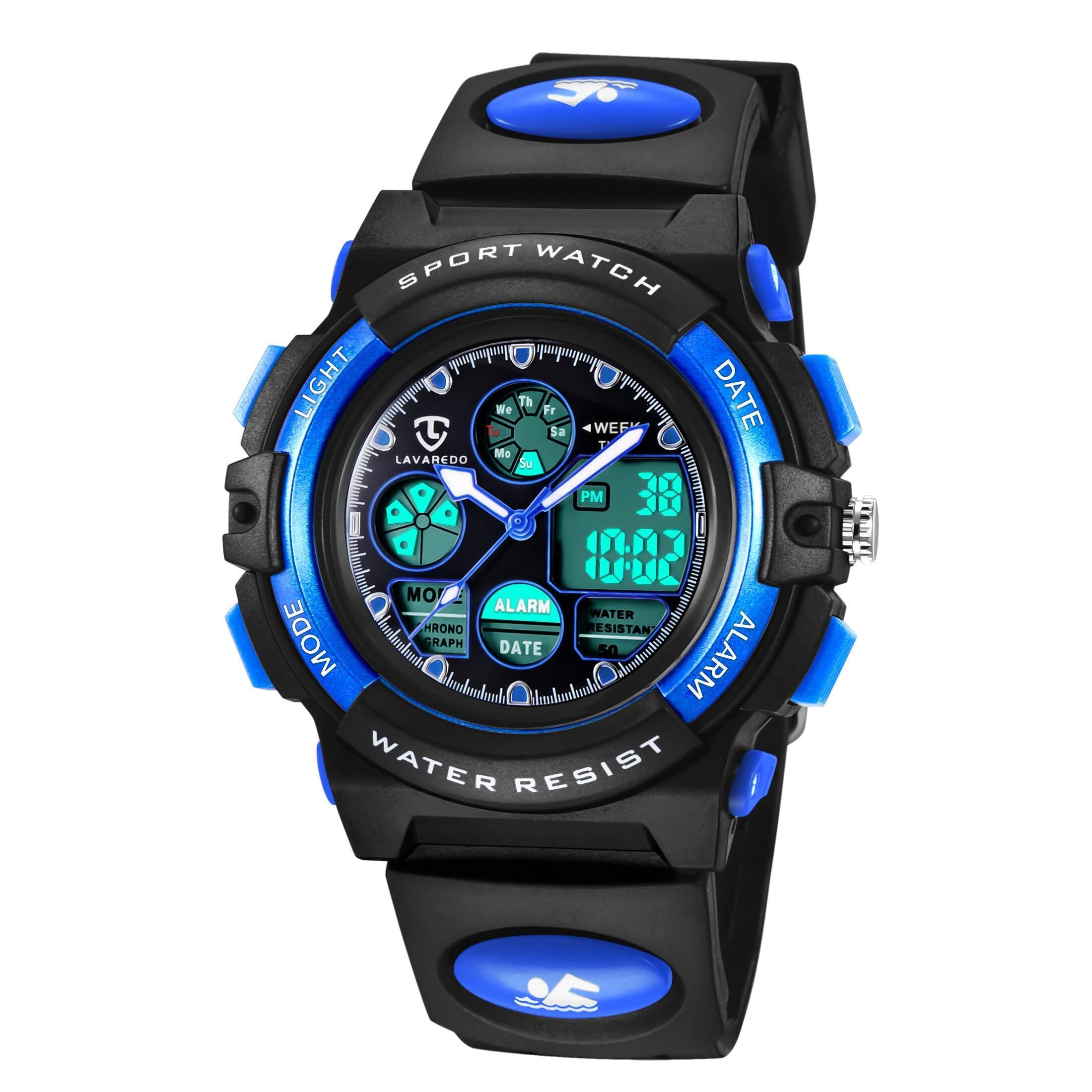 IN Shop 子供腕時計 ボーイズスポーツウォッチ アウトドア多機能防水 アラート 日付曜日表示 デュアルタイム LED アナログ表示 女の子男の子 デジタルウォッチ (ブルー)