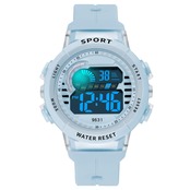 ⌚【スポーツテイストのデザインでおしゃれに決まる!】モダンなスポーツデザインを採用し、丸型ディスプレイとデジタル表示がクールな印象を演出。爽やかなライトブルーのカラーは、カジュアルコーデにもぴったり!学生やスポーツ好きな方におすすめの一本です。