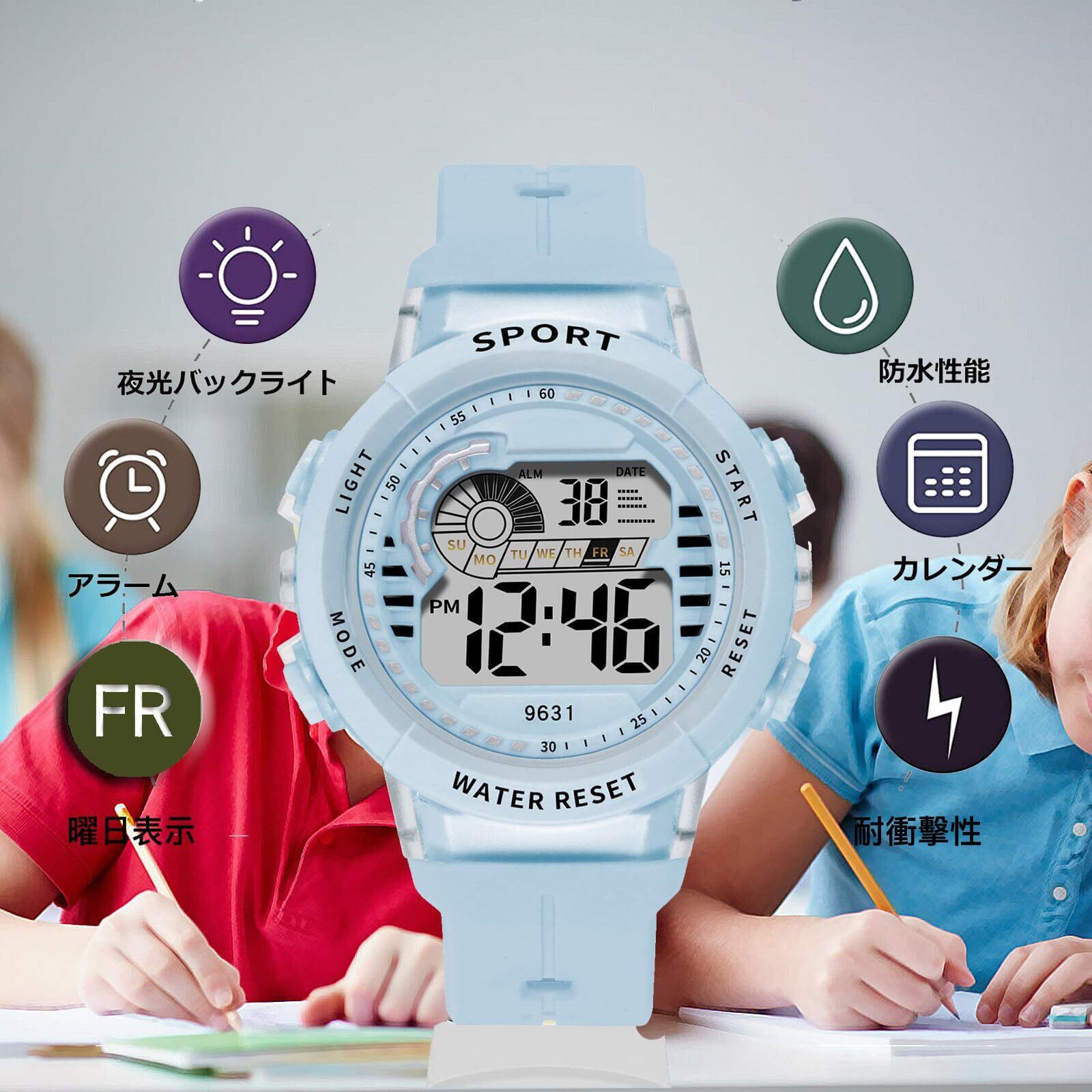 アラームやストップウォッチ、曜日表示など、さまざまな機能が充実しており、忙しい毎日をサポート。LEDバックライトを搭載しているため、暗い場所でも時間を確認しやすく、子供たちの自立を促進します。新学期や友人へのプレゼントにも最適です!