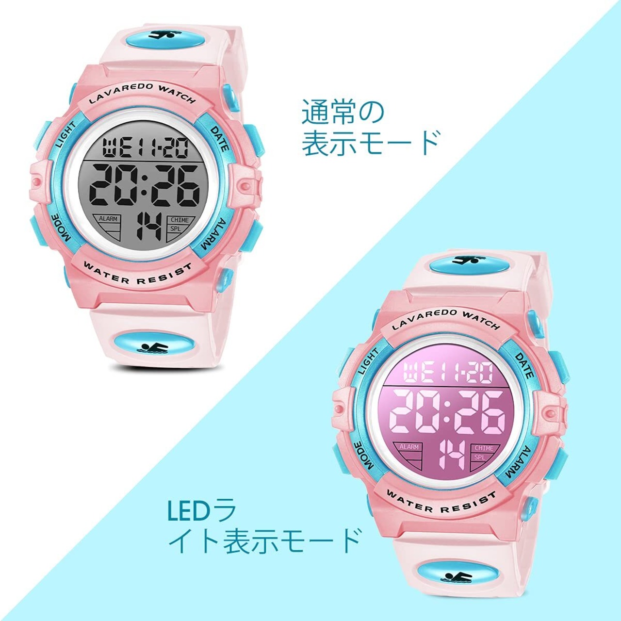 腕時計 キッズ 女の子 子供 スポーツウォッチ アウトドア多機能防水 アラート 日付曜日表示 デュアルタイム LED アナログ表示 デジタル腕時計