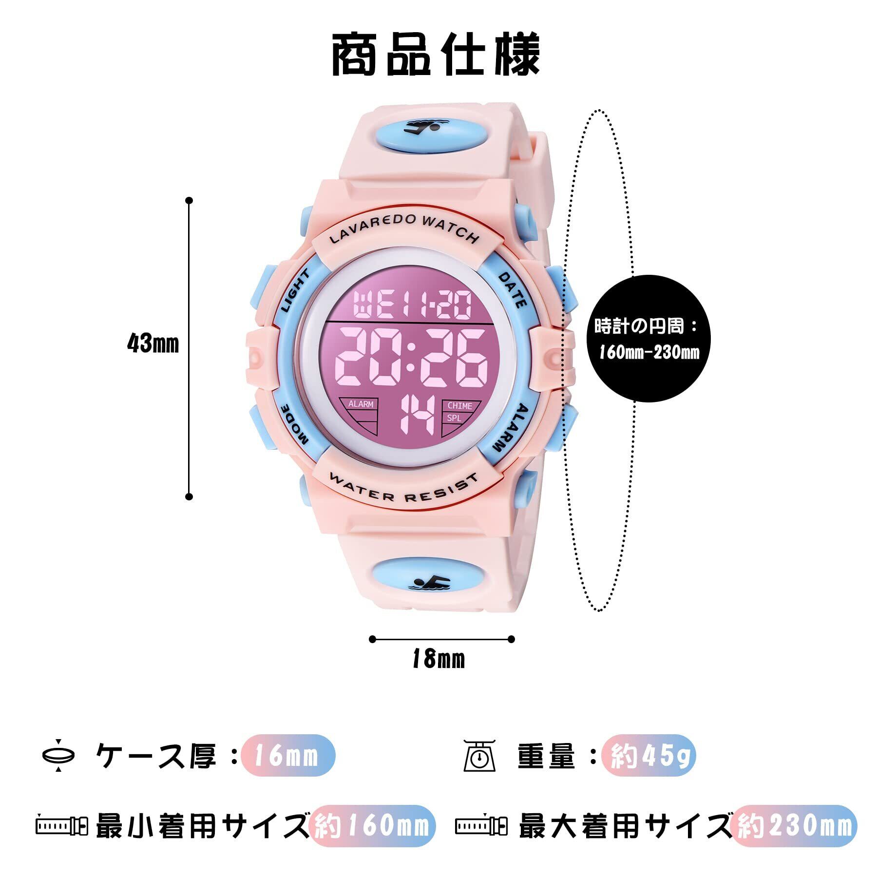子供腕時計 キッズ デジタル 女の子 スポーツウォッチ ガールズ 防水腕時計 多機能 50メートル防水 LED表示 アラート ストップウォッチ 日付 曜日 アウトドア 入学祝い 女の子 男の子 誕生日 プレゼント 取扱説明書付き