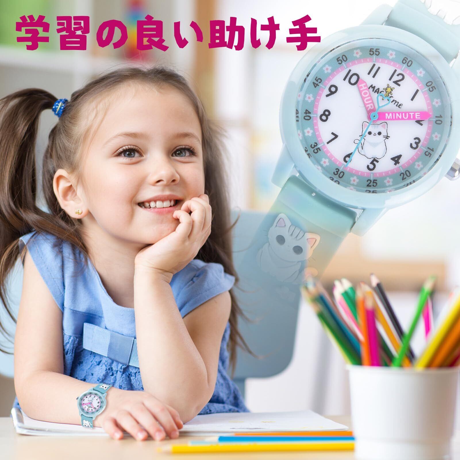 [Maeau] 軽量 うで時計 きっず 可愛い 文字盤 時計 アナログ 動物柄 子供 ガールズ 通学 プレゼント 勉強 猫