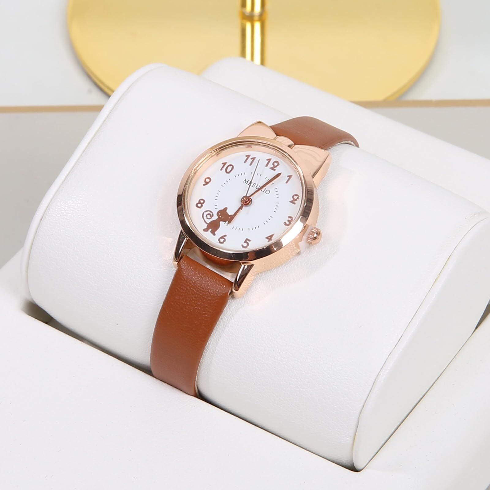 キッズ腕時計 クオーツ アナログ表示 ガールズ子供用 女の子可愛い 子供の日 入学 通学 入園 通園 新学期 誕生日 お祝い プレゼント (ブラウンー金)