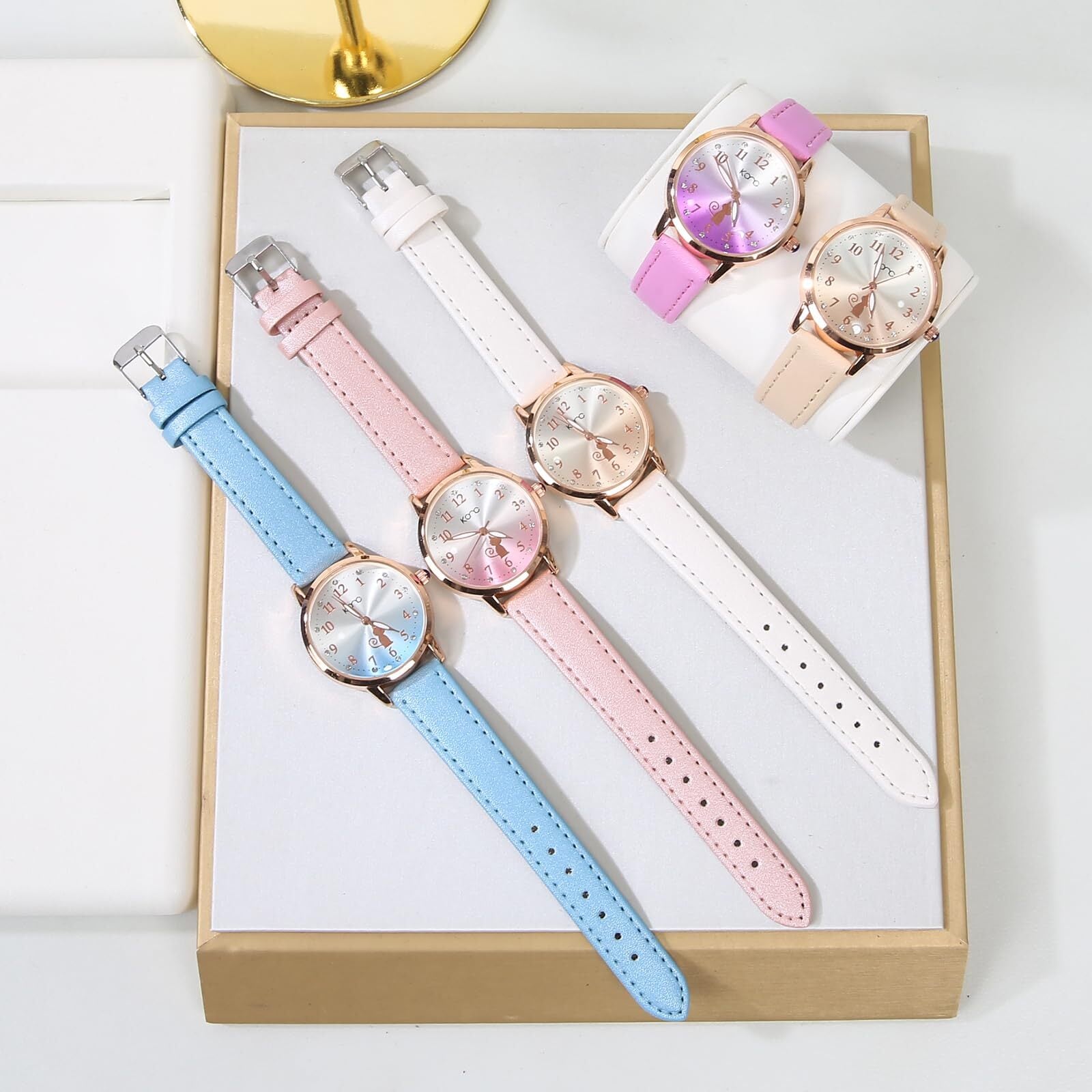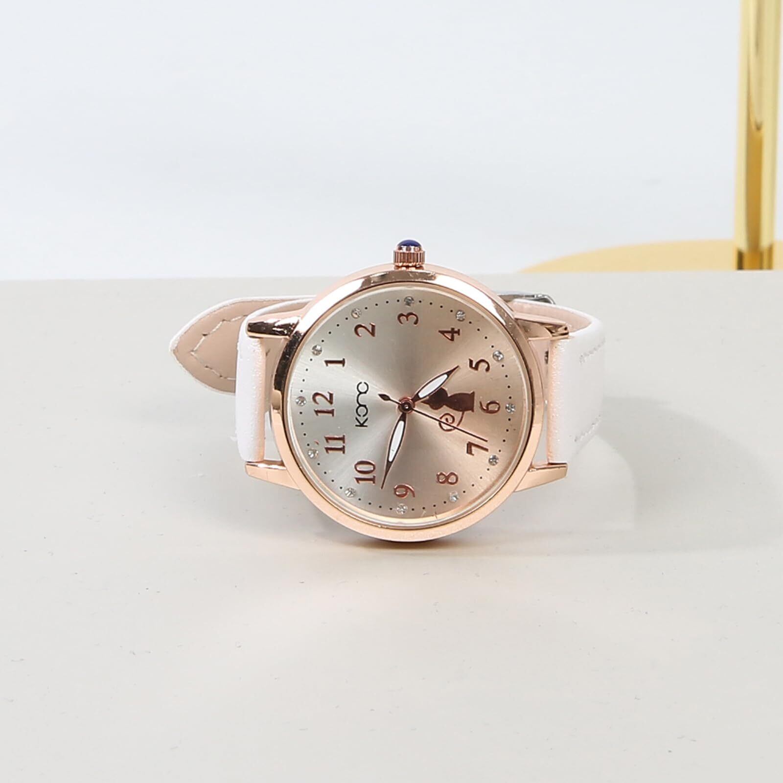 キッズ腕時計 クオーツ アナログ表示 ガールズ子供用腕時計 猫柄 可愛い 猫時計 子供の日 入学 通学 入園 通園 新学期 誕生日 お祝い プレゼント (ホワイト)