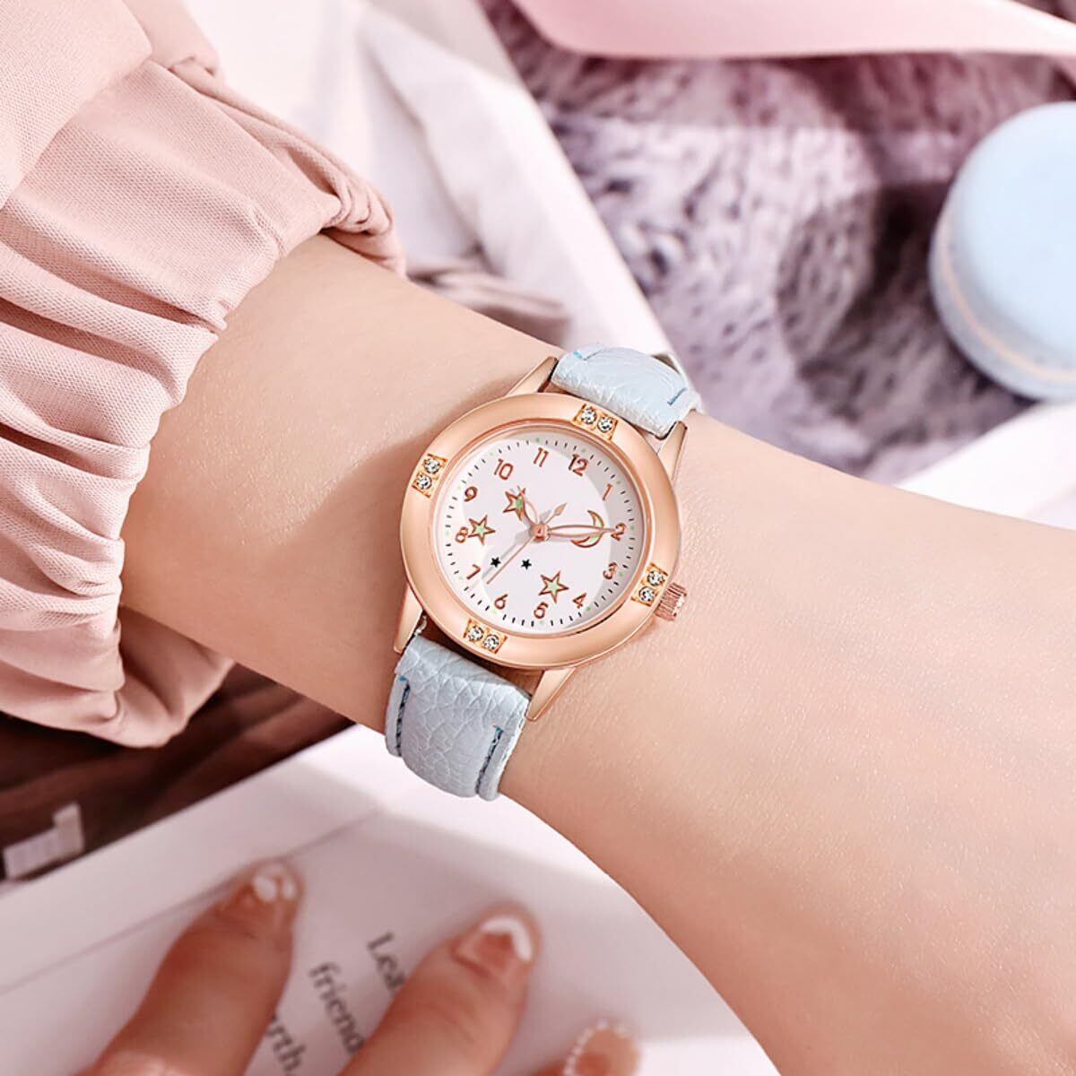 \【新着商品】キッズ腕時計 クオーツ アナログ表示 ガールズ子供用腕時計 可愛い 子供の日 入学 通学 入園 通園 新学期 誕生日 お祝い プレゼント (ブルー)/